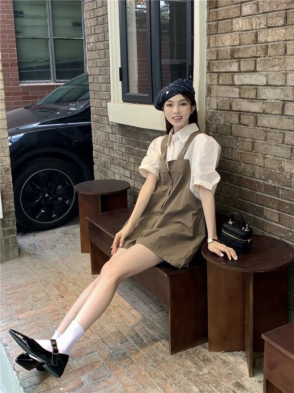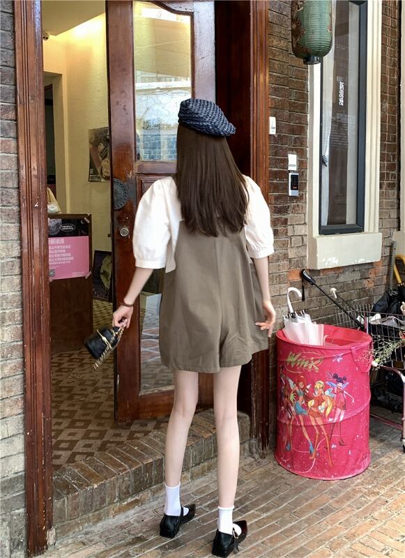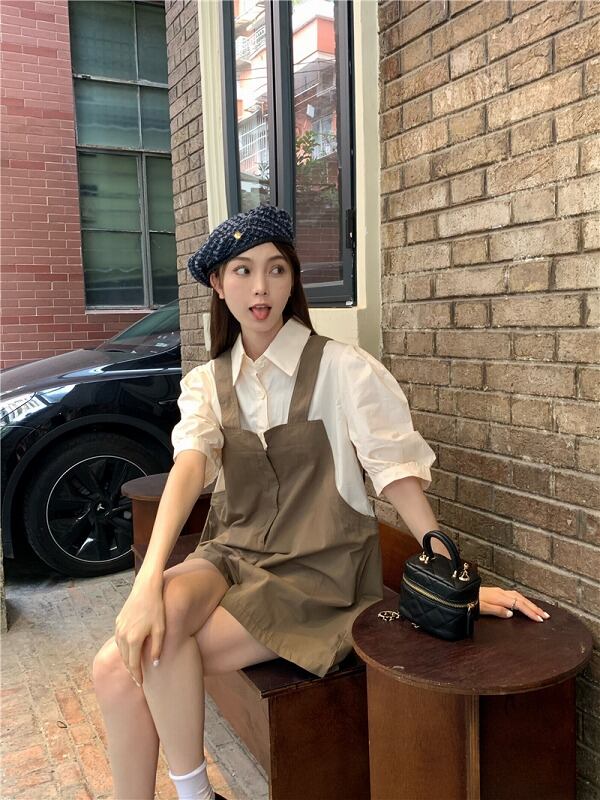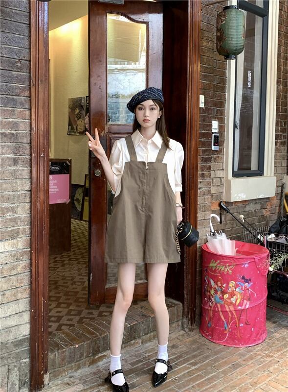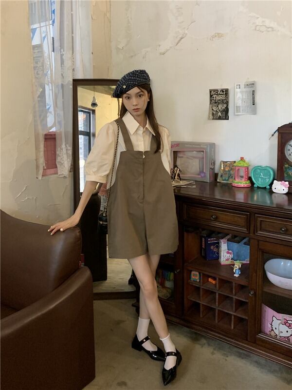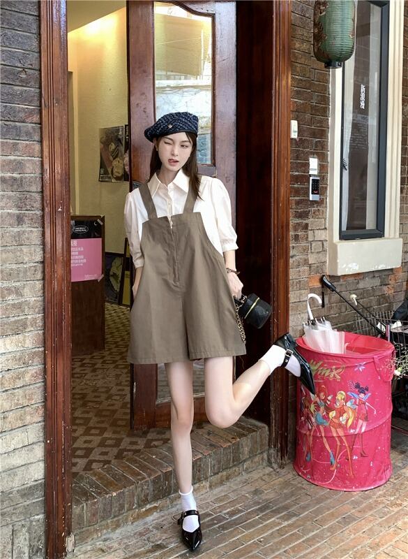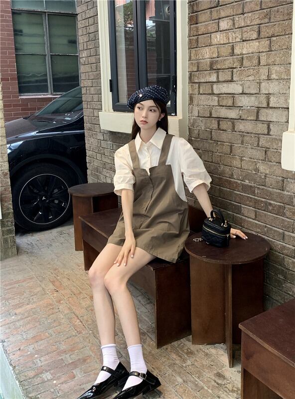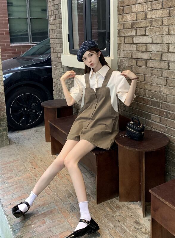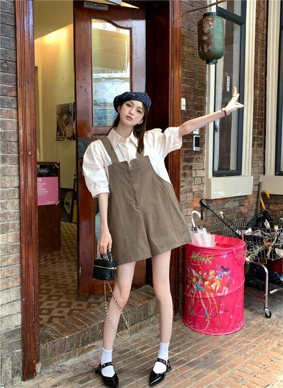 オールインワン オーバーオール フェイク 切り替え バイカラー 体型カバー 着痩せ シンプル