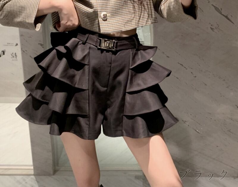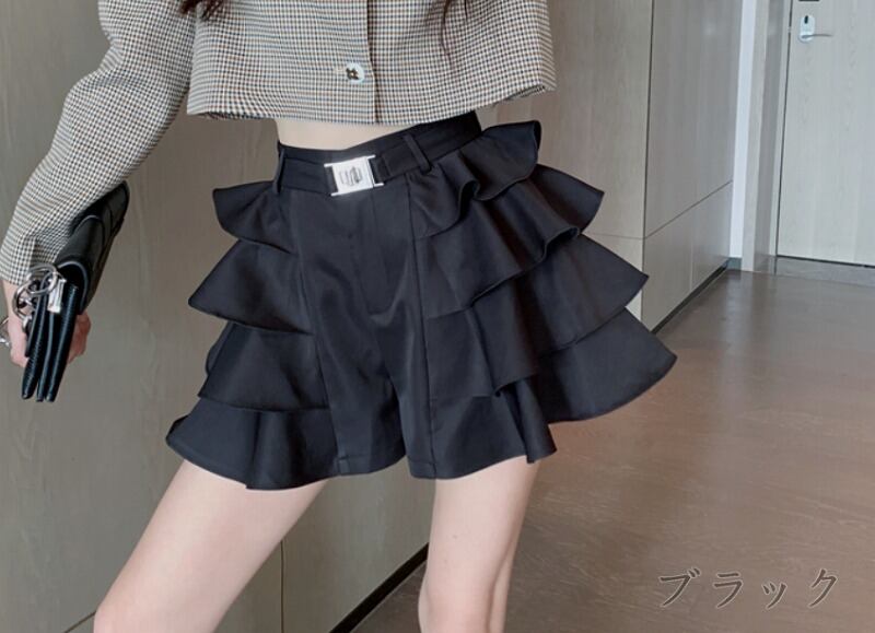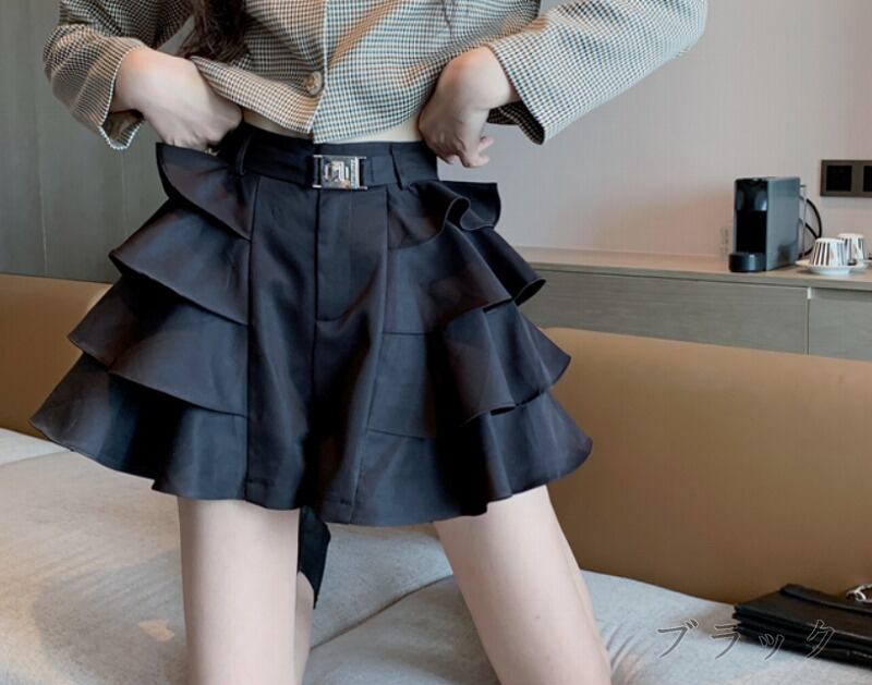 キュロット フリル 切り替え スリム 着痩せ sweet系