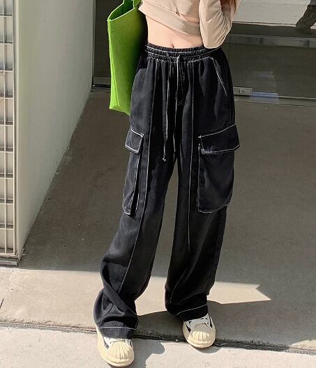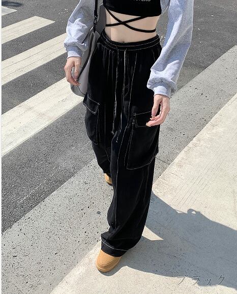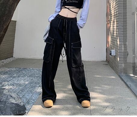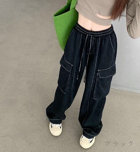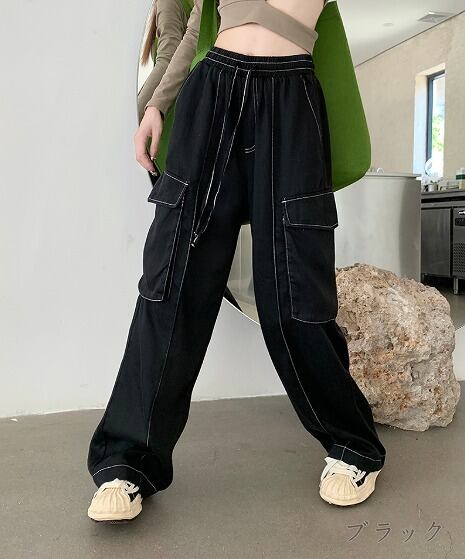 パンツ 切り替え 体型カバー 着痩せ BIGポケット シンプル カジュアル