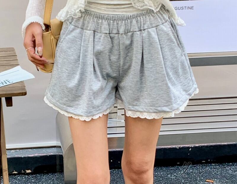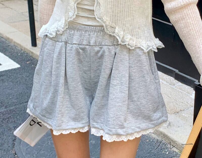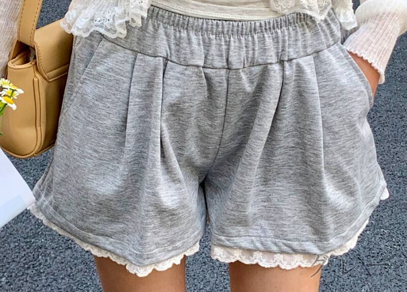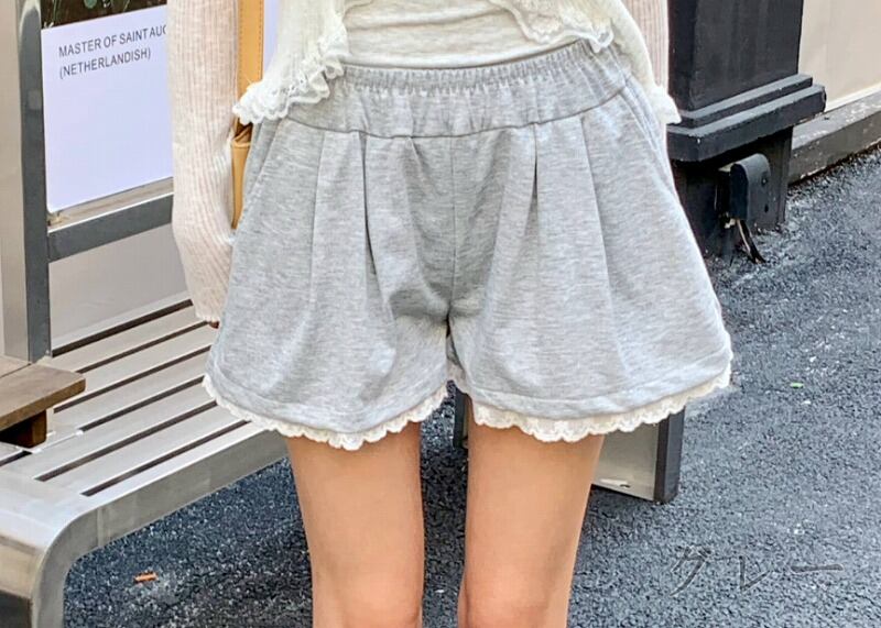 ショートパンツ ショーパン 切り替え 体型カバー 着痩せ レース シンプル カジュアル