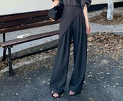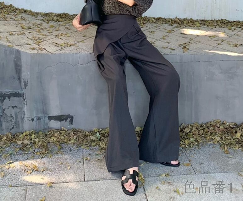 パンツ 切り替え 体型カバー 着痩せ シンプル