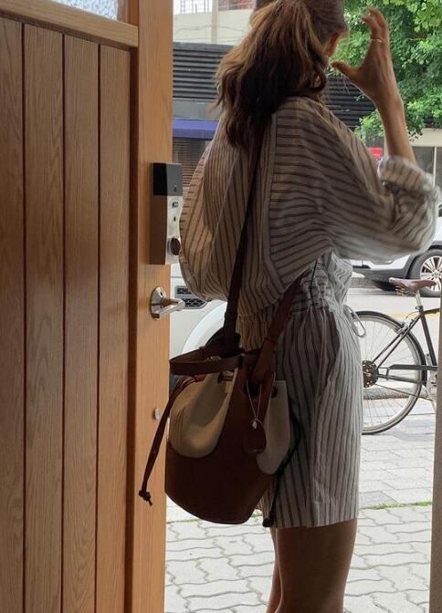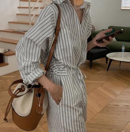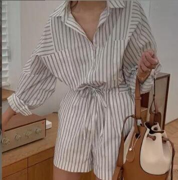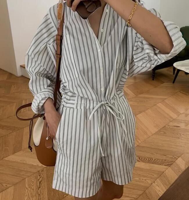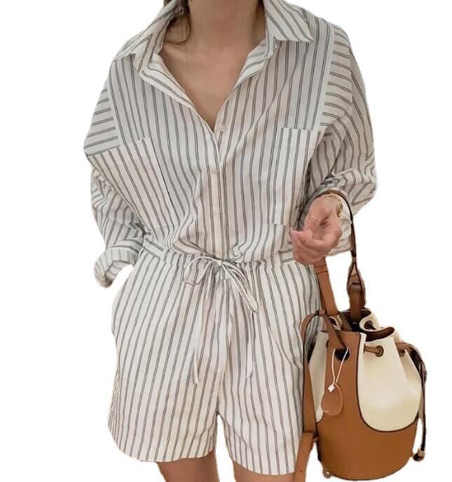 レディース ドローストリップ縞体閑長袖タイツ半ズボン /サロペット