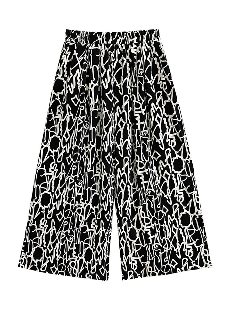 初回送料無料 夏の韓国風パンツ 痩せ見え花柄ストレート9分パンツ ハイウエスト 個性的ズボン