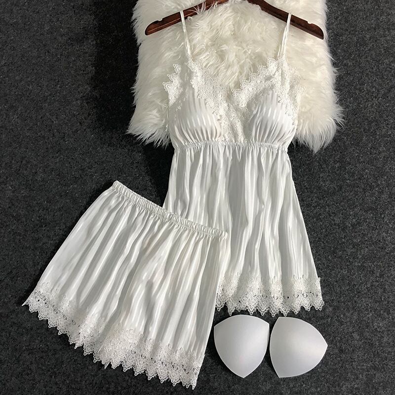 新しいパジャマ女性夏氷糸縞キャミソール半ズボン2枚セットの薄い家庭服