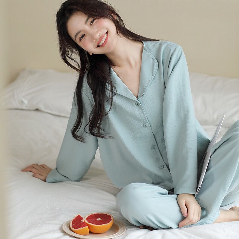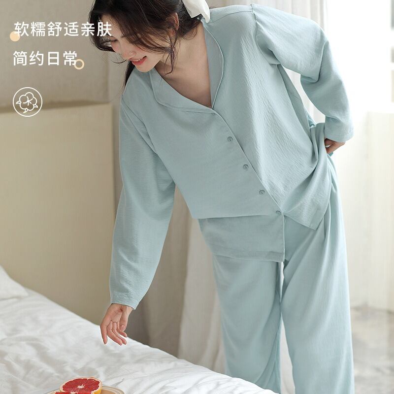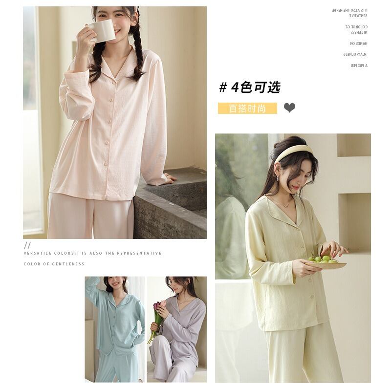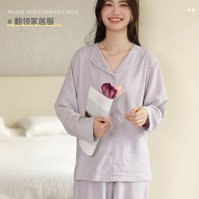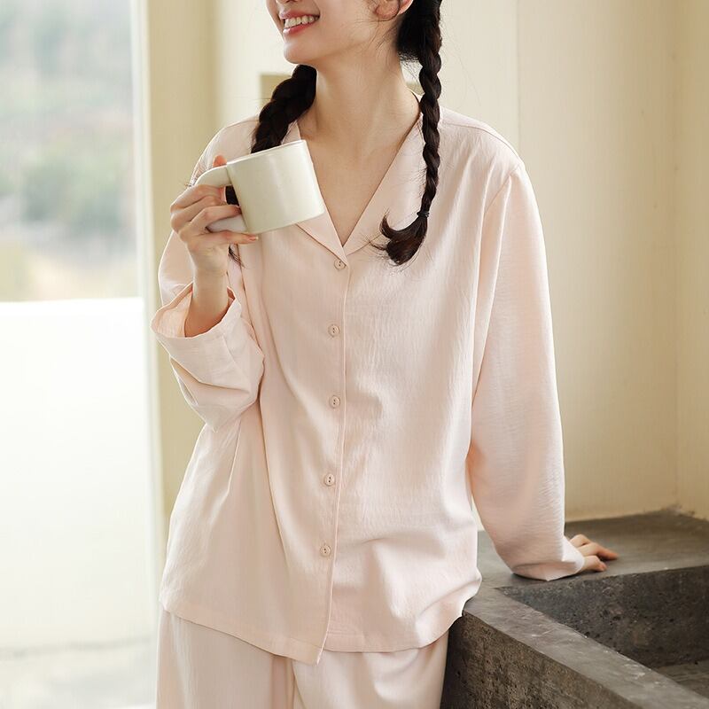 春夏パジャマ ボタン部屋着 女性 ゆったり 長袖上着 カジュアル長ズボン スーツ