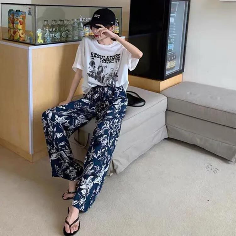 ワイドパンツ 花柄 レディース 春 夏 薄手 ゆったり ボトムス リゾート 長ズボン ロン