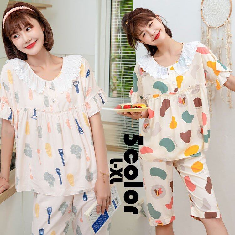上下セット パジャマ レディース 夏 半袖 花柄 可愛い 半ズボン レディースルームウエア