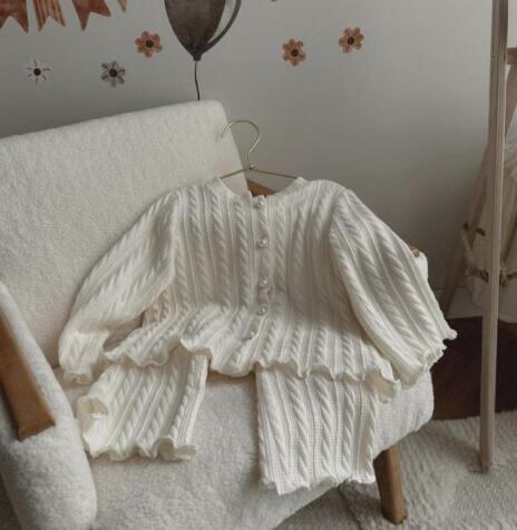 新品 ベビー服 カーディガントップス+パンツ ズボン ニットセットアップ 80-130cm