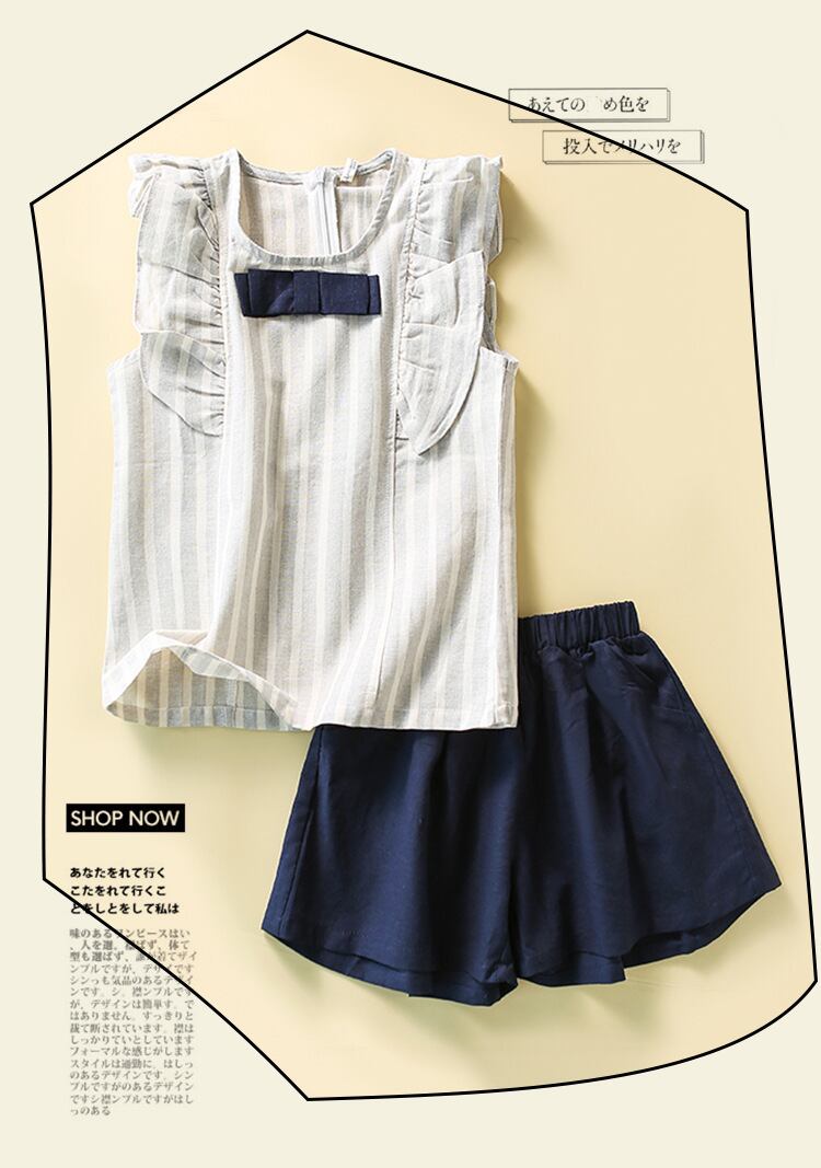 2022夏 超人気可愛い 3-9歳 リボン蝶結び 柔らかい 綿麻上着+ズボン セットアップ