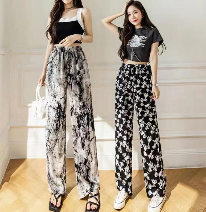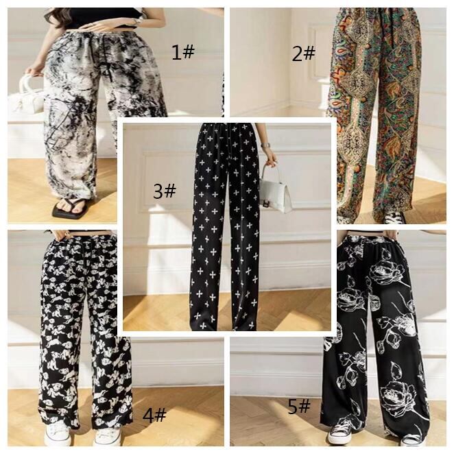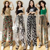 夏新作・レディースズボン・ゆとり・高い腰・花柄・ワイドパンツ