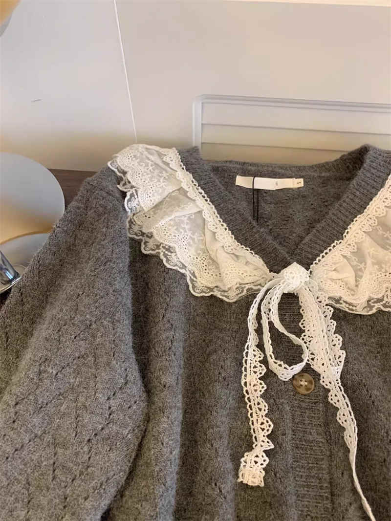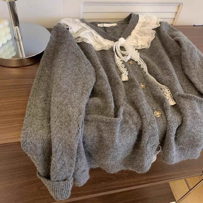今季マストバイ 長袖 レトロ トップス 可愛い ニット カーディガン カジュアル系 Vネック