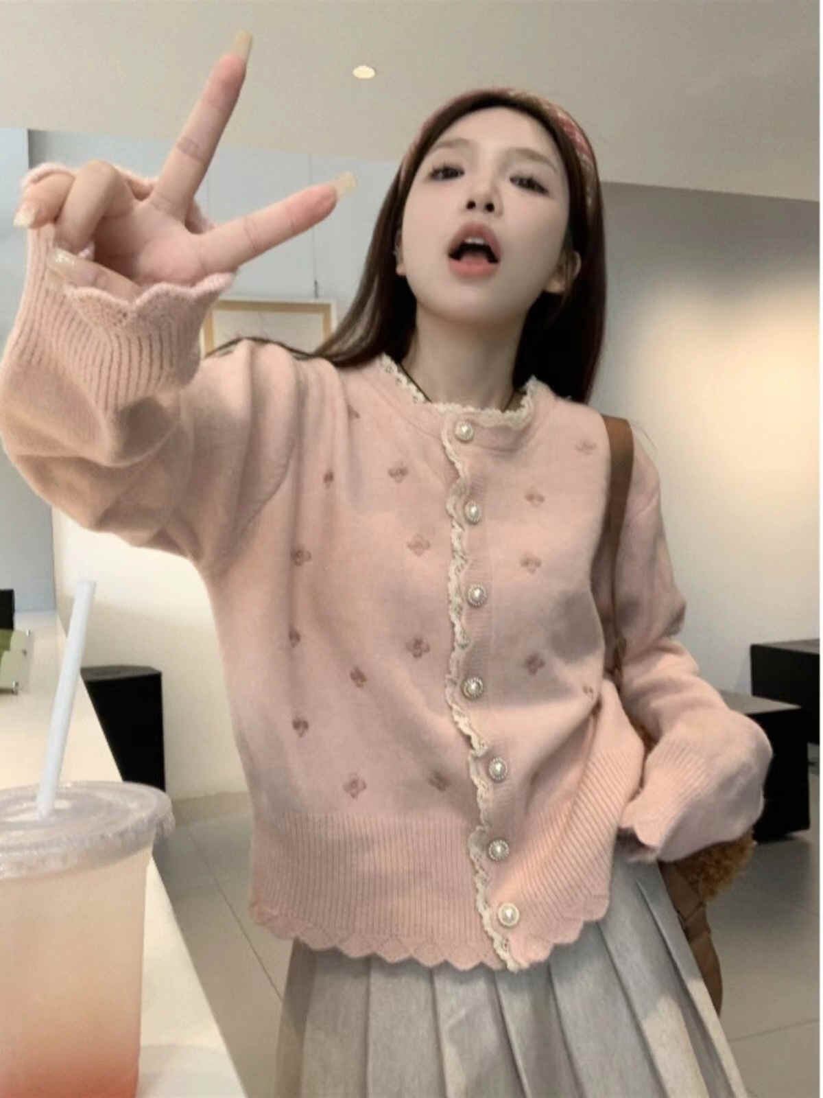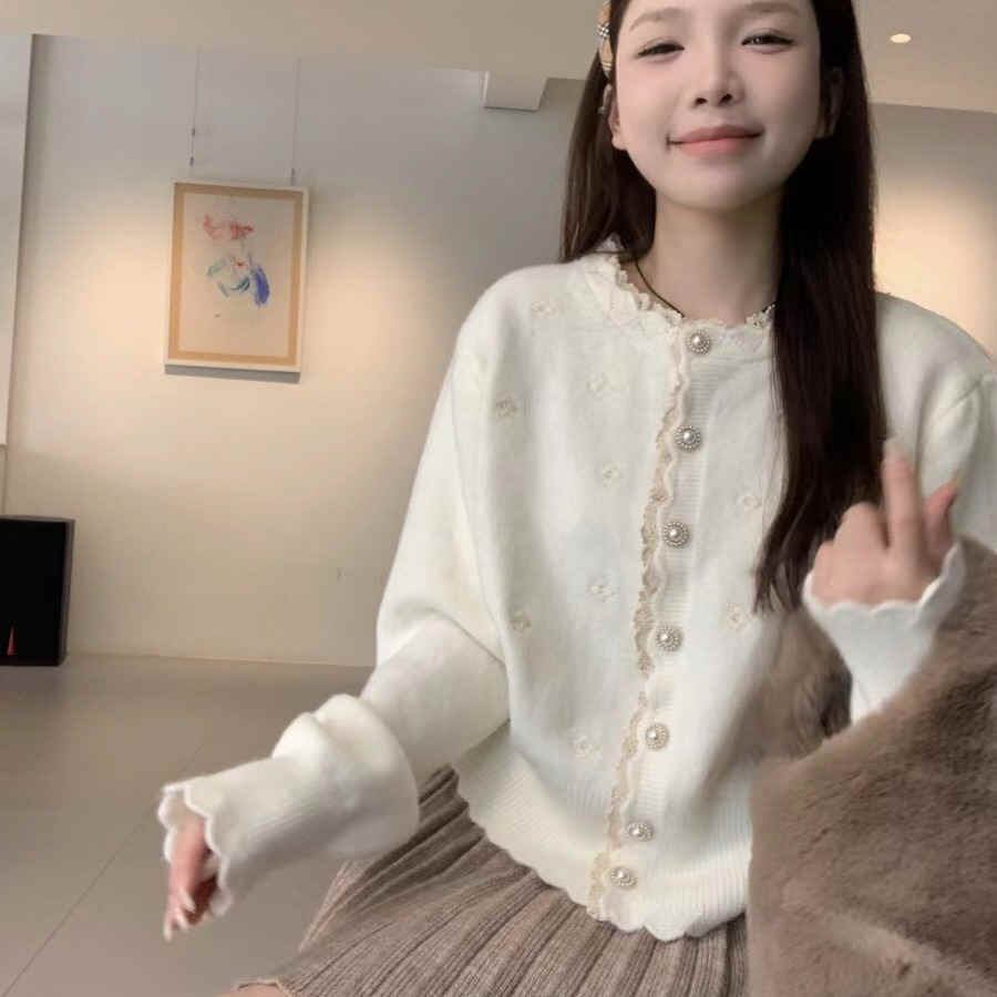 今季マストバイ 長袖 レトロ トップス 可愛い ニット カーディガン ブラウス