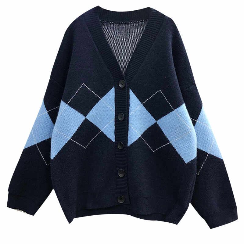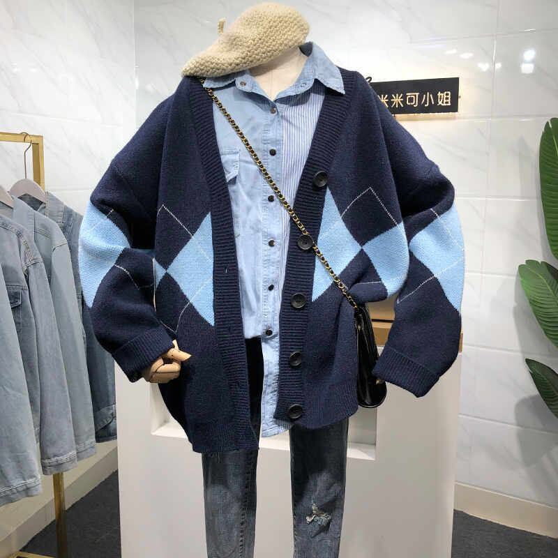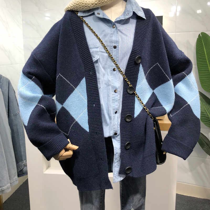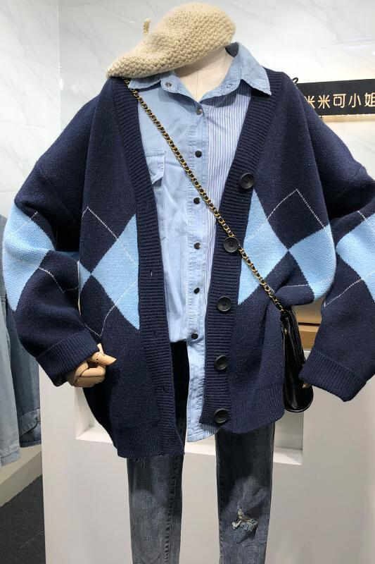今季マストバイ INS 新作 可愛い アーガイル 長袖 Vネック ニット カーディガン