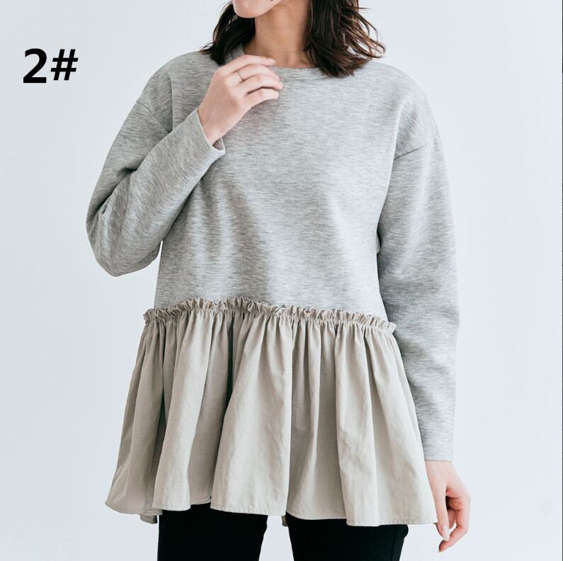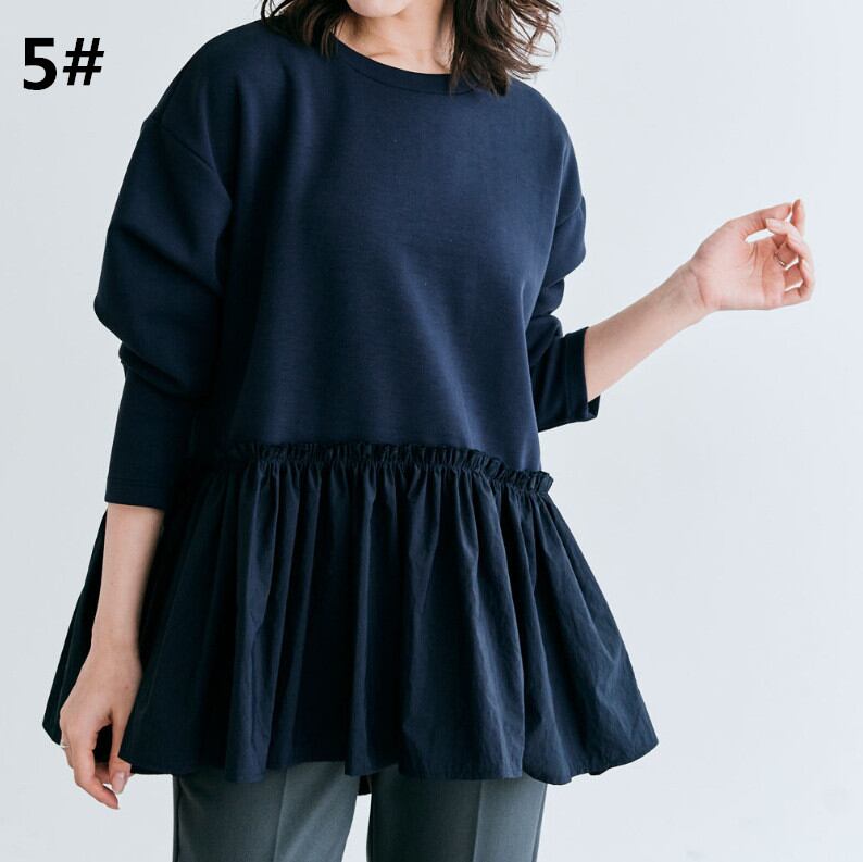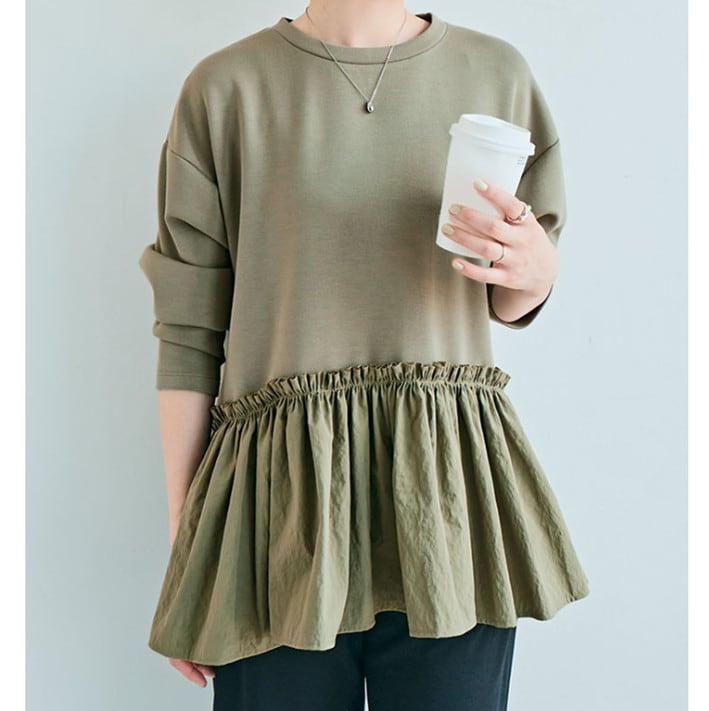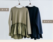 秋冬新作 トップス レディース プルオーバー 長袖 ラウンドネック 異素材 大きいサイズ