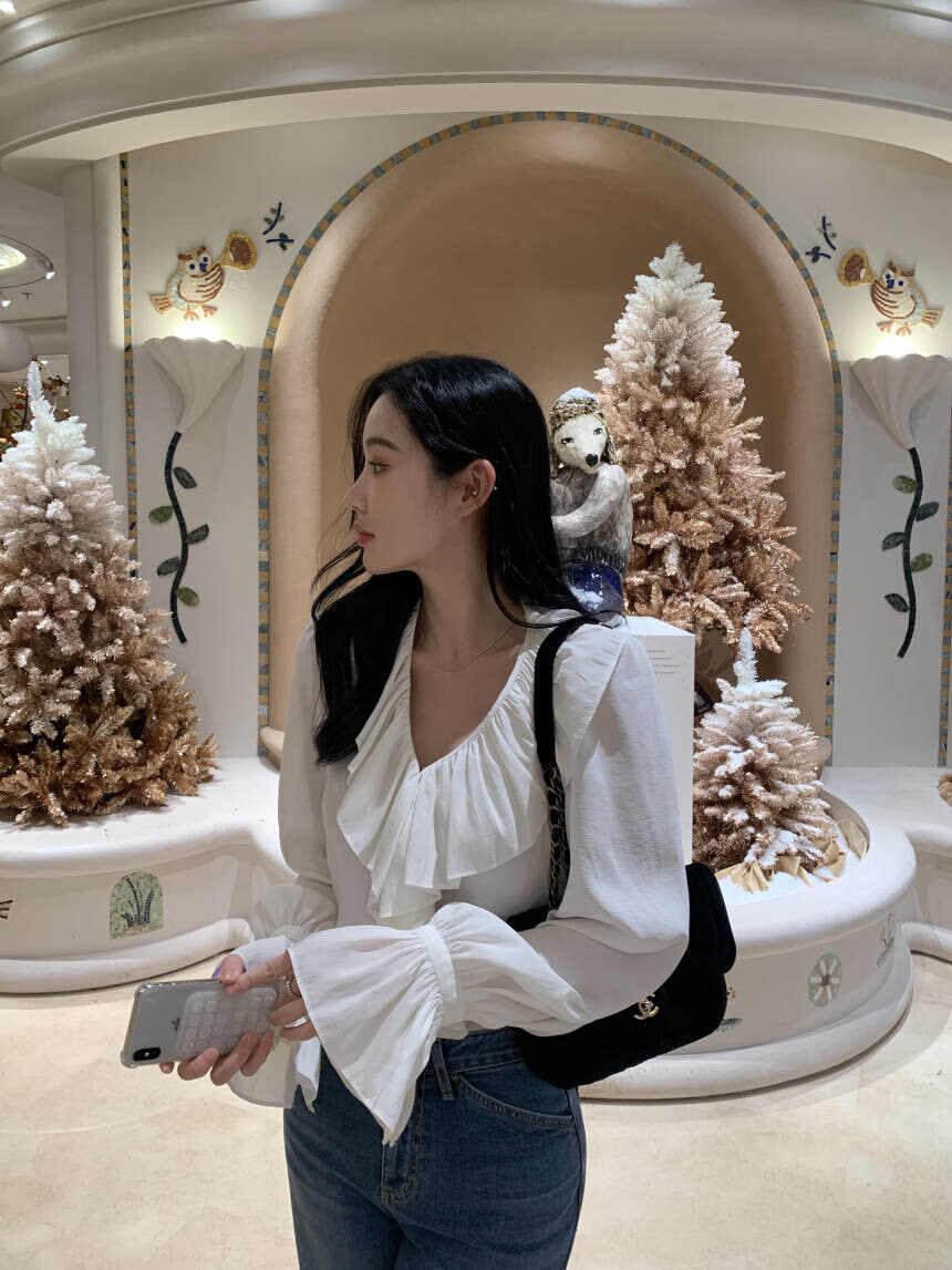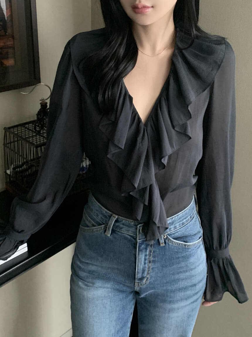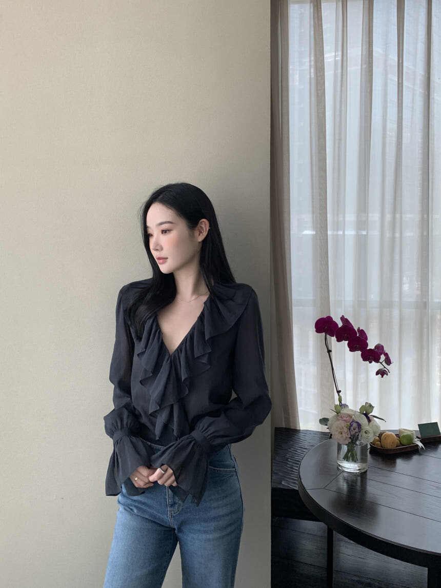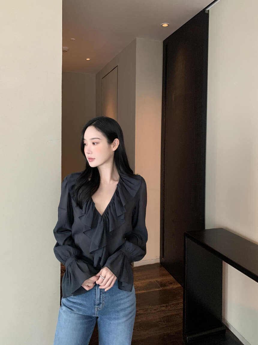 今季マストバイ chic 韓国ファッション ブラウス 優しい Vネック トップス