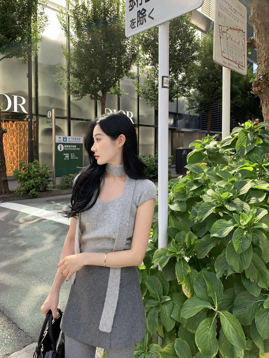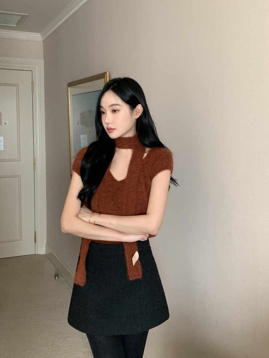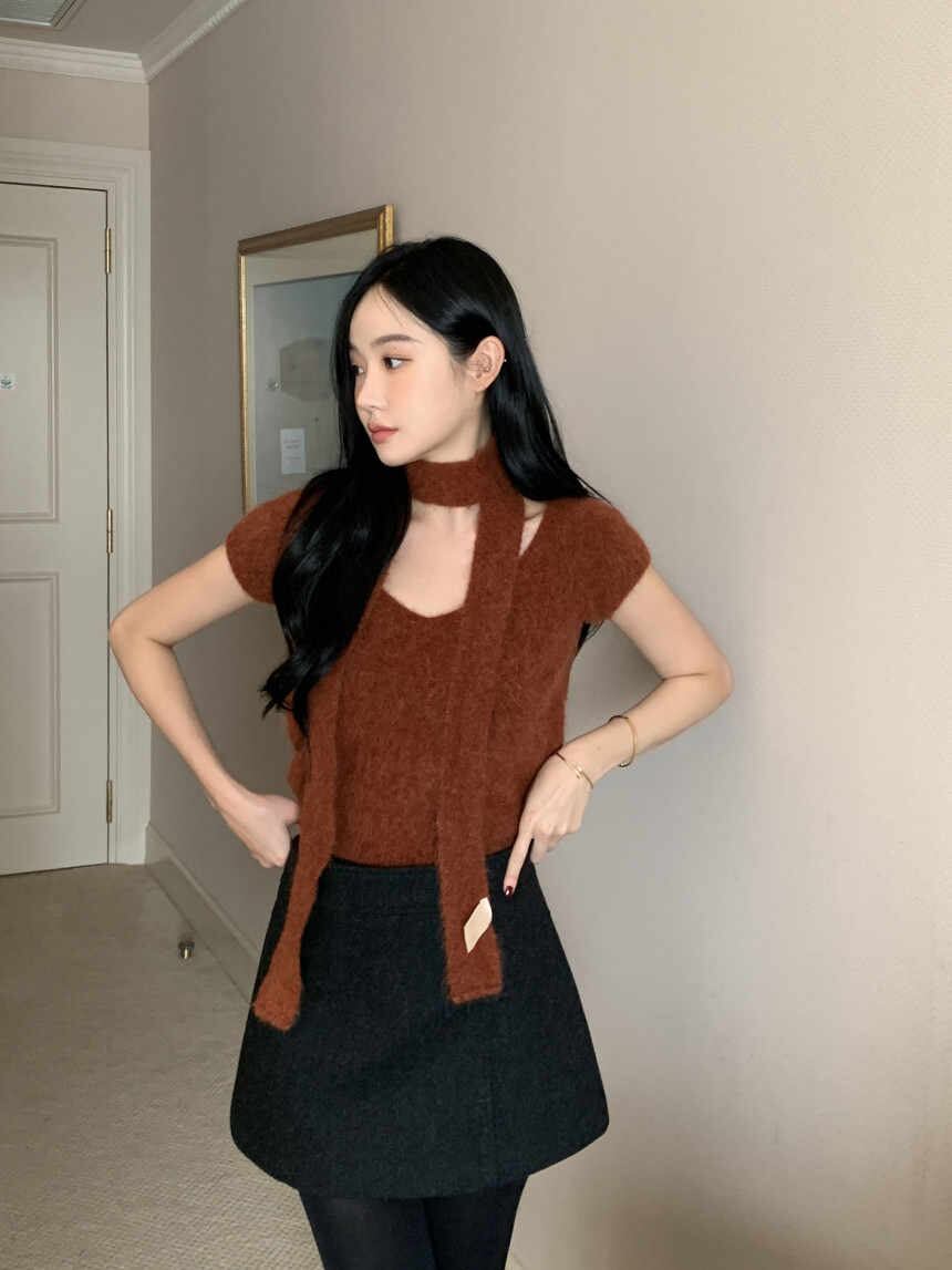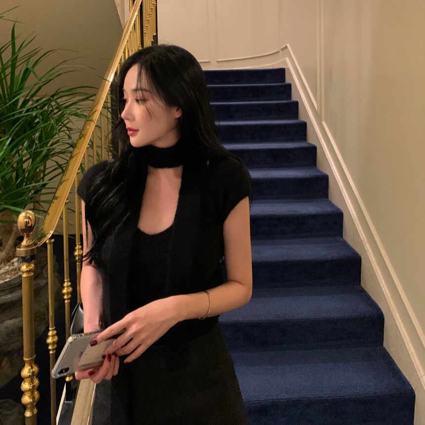 今季マストバイ chic 韓国ファッション 人気 Vネック おしゃれ 設計感 セーター+マフラー