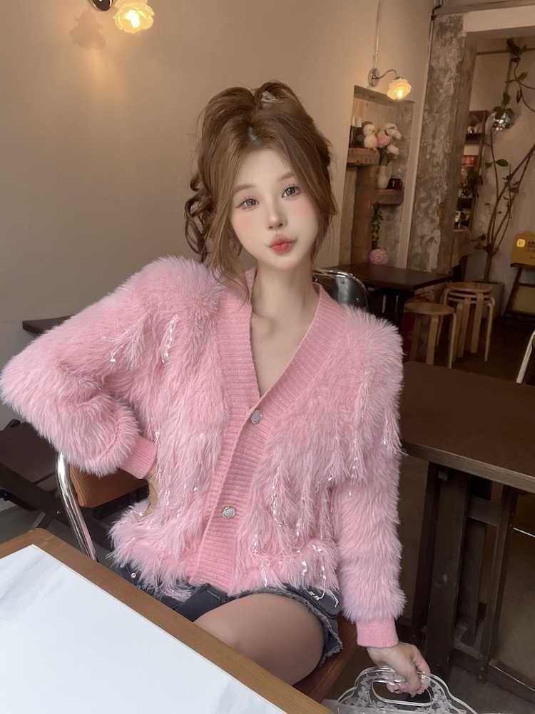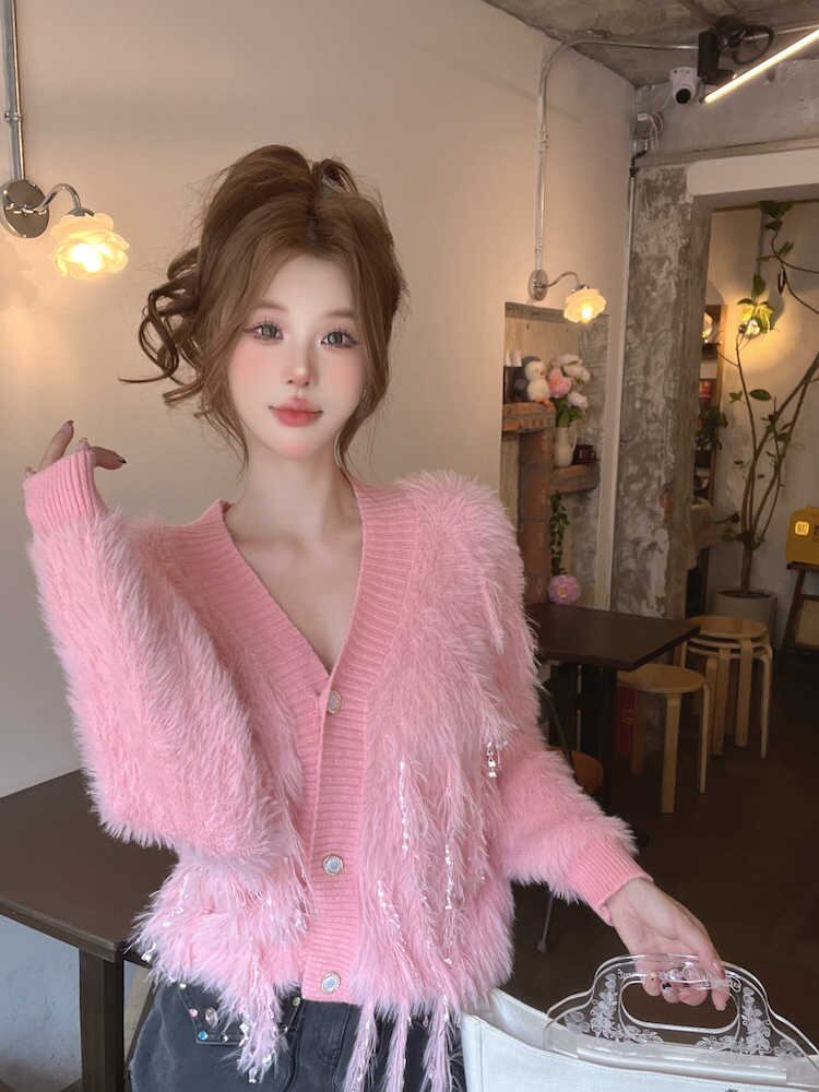 今季マストバイ  シングルブレスト ニット 立体タッセル 優しい 可愛い カーディガン