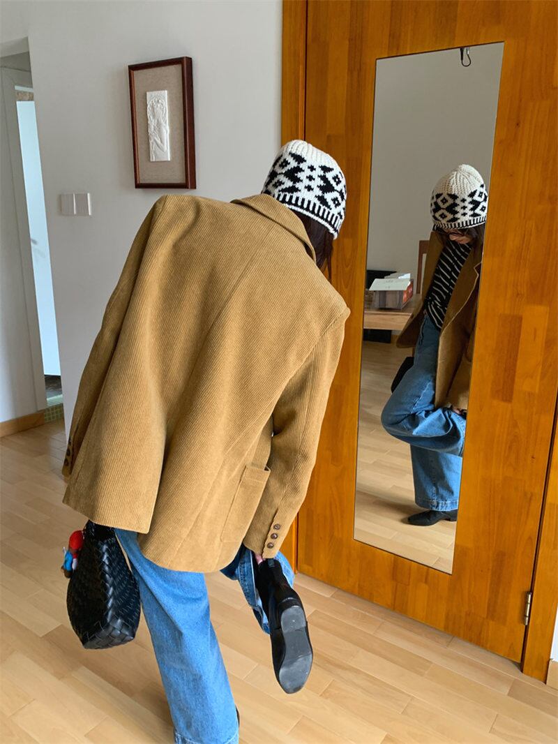 今季マストバイ カジュアル レトロ ゆったり コーデュロイ カジュアルスーツ