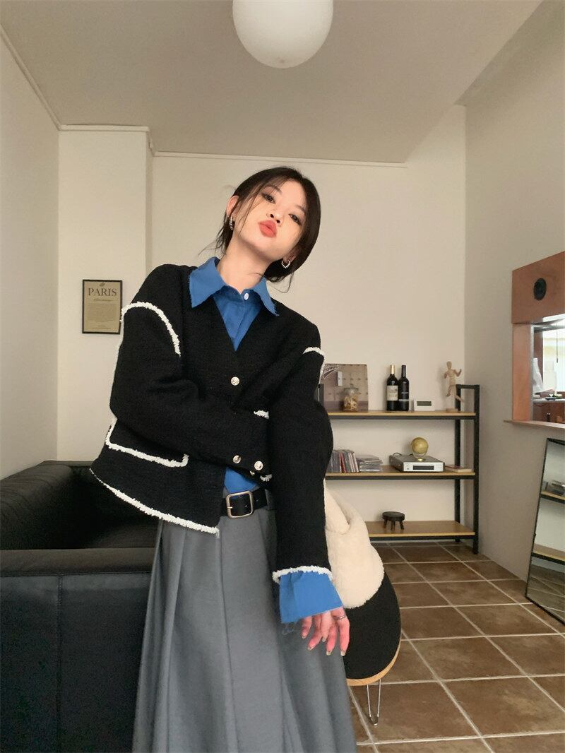 今季マストバイ 設計感 気質 おしゃれ chic アウターツイード カーディガン