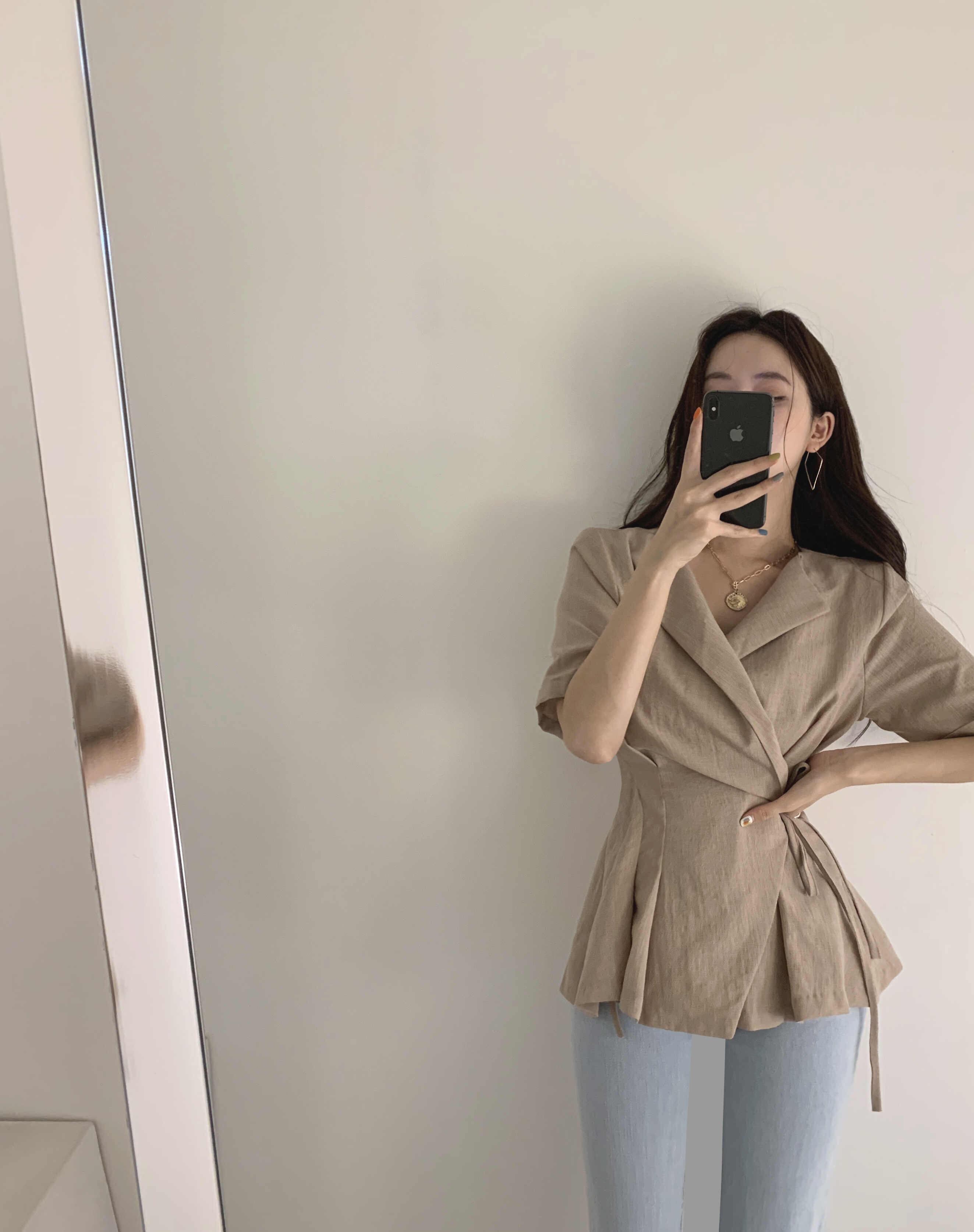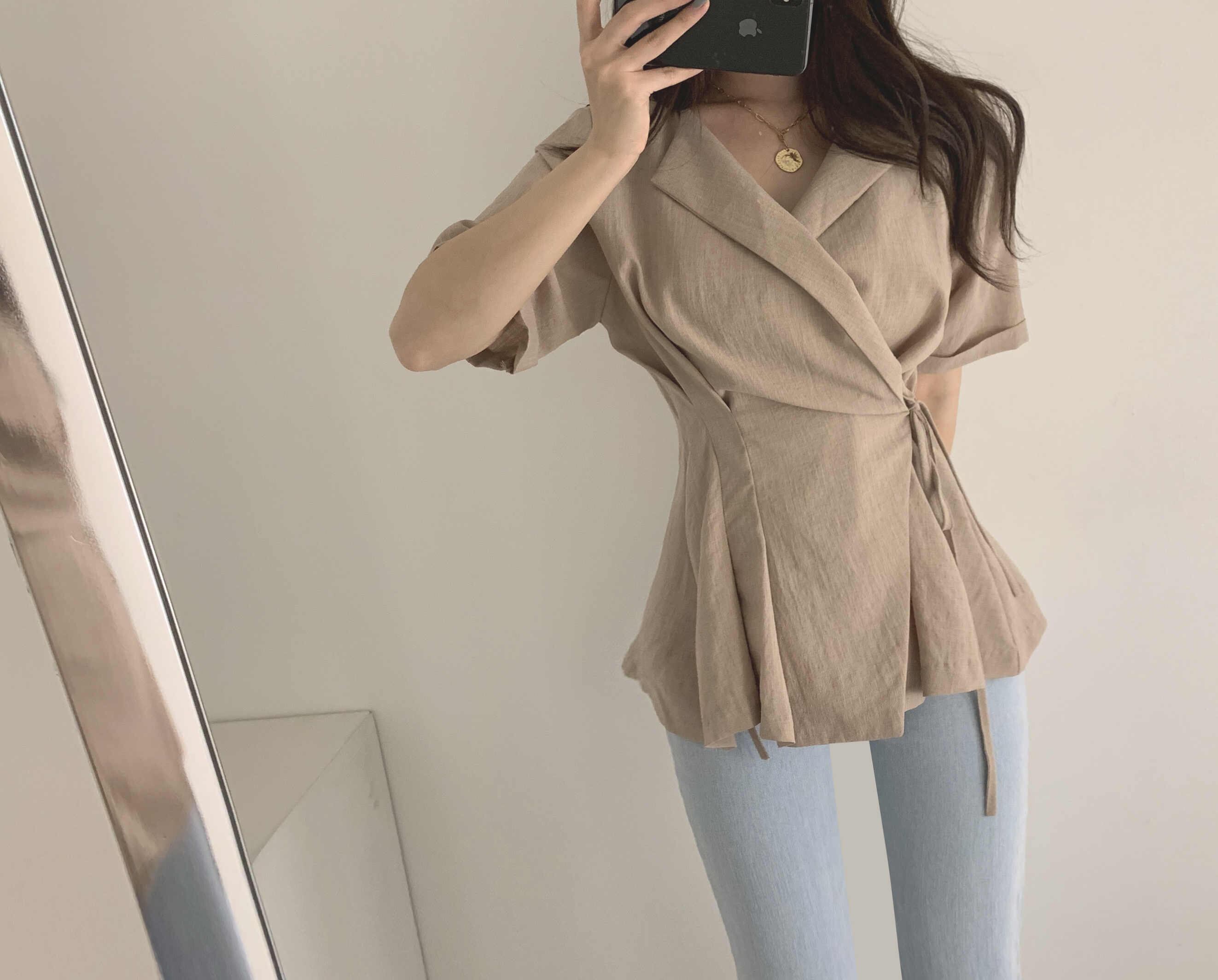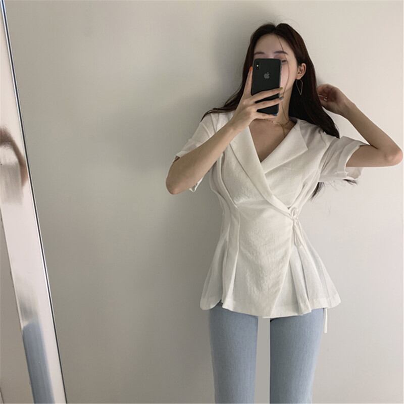 2023夏INS新作★気質 韓国系 折り襟 トップス シャツ ブラウス スリム