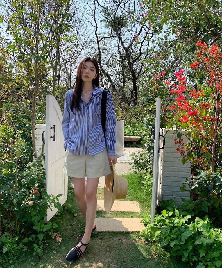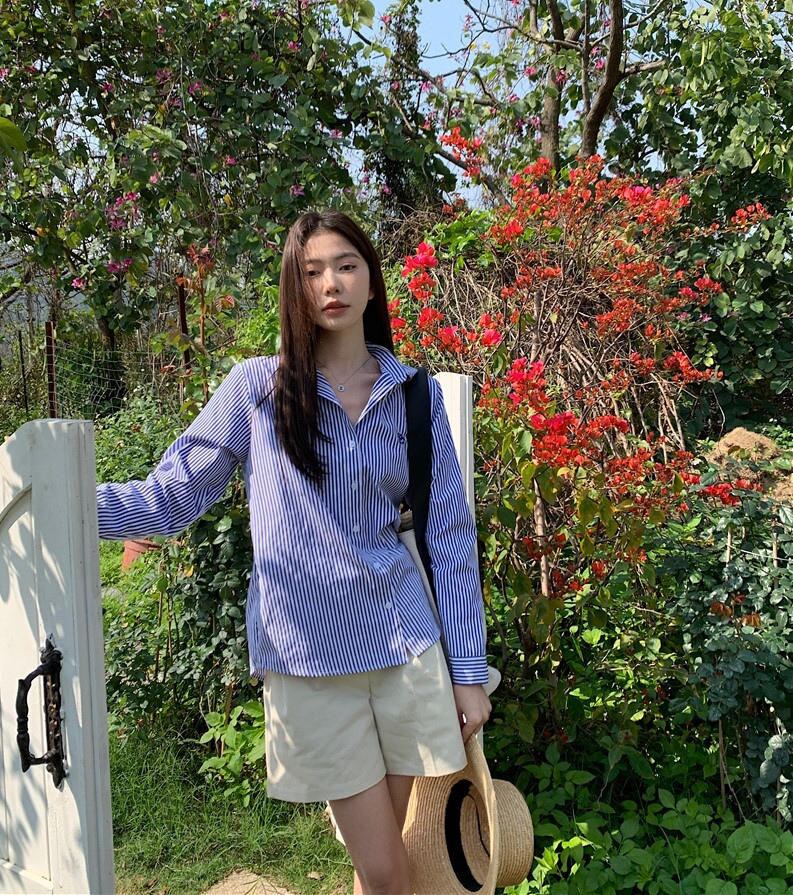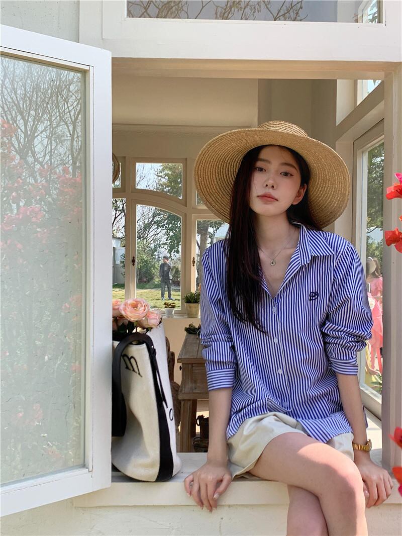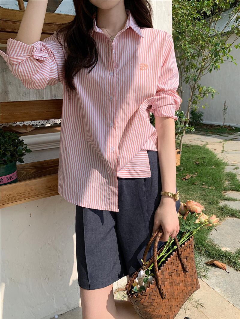 2023夏INS新作★韓国系 カジュアル系 ストライプ柄 トップス シャツ ブラウス ピンク/ブルー2色