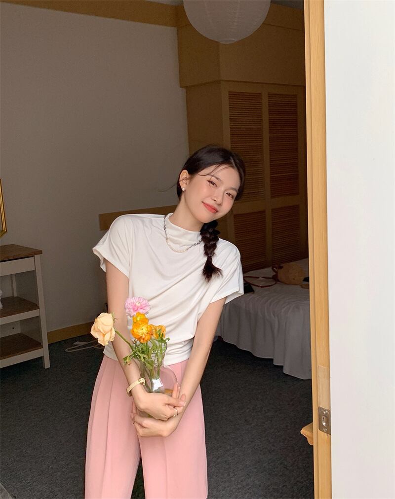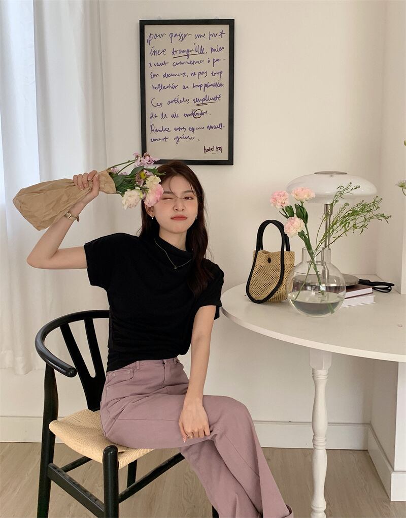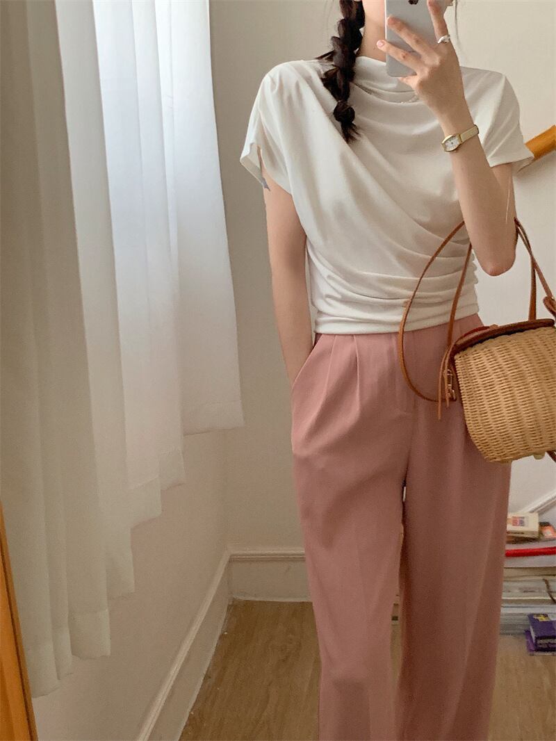 2023夏INS新作★気質 レトロ エレガント スリム シンプル半袖シャツ ブラウス トップス