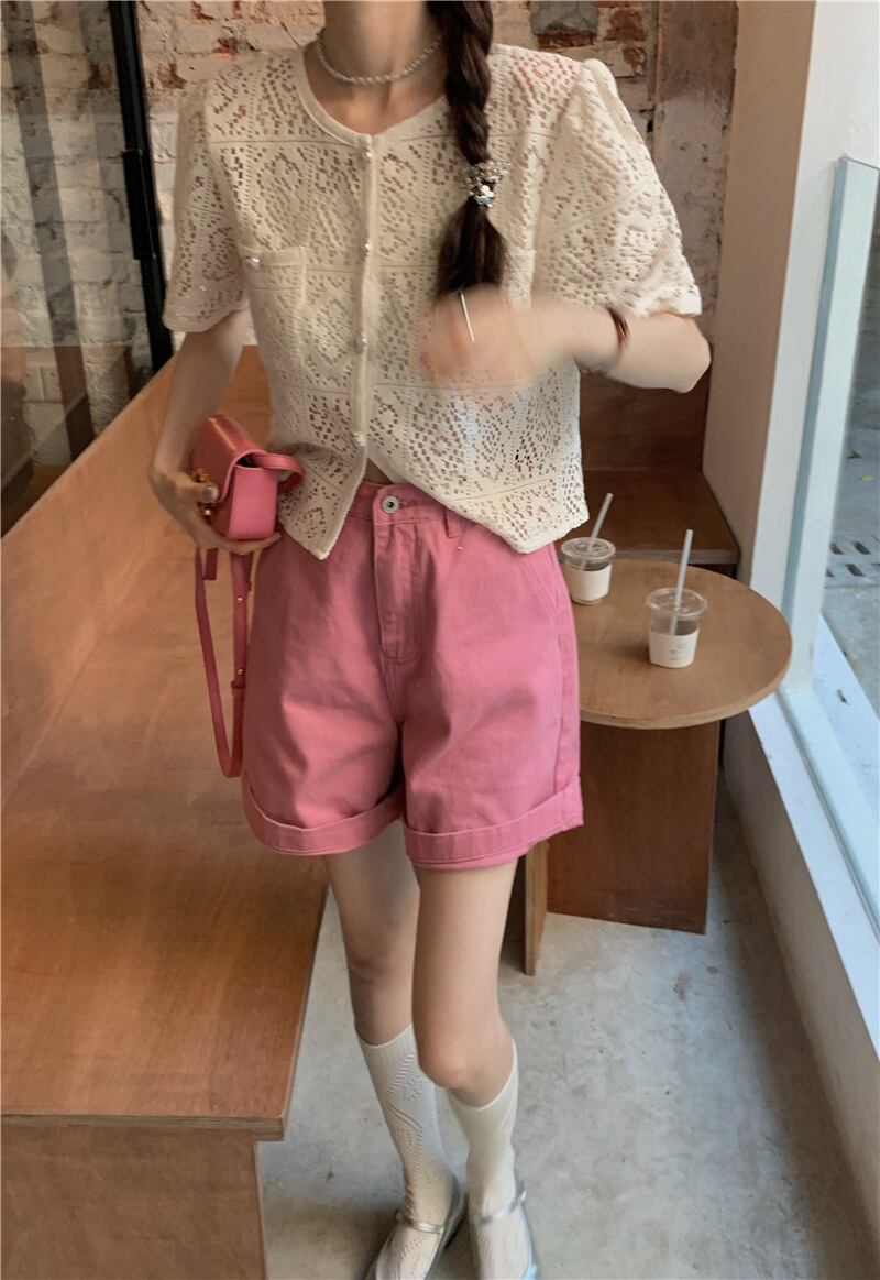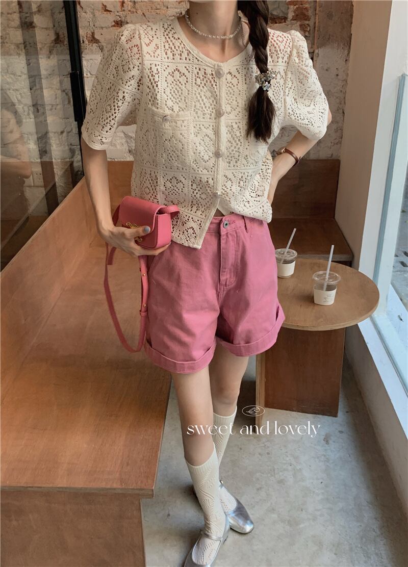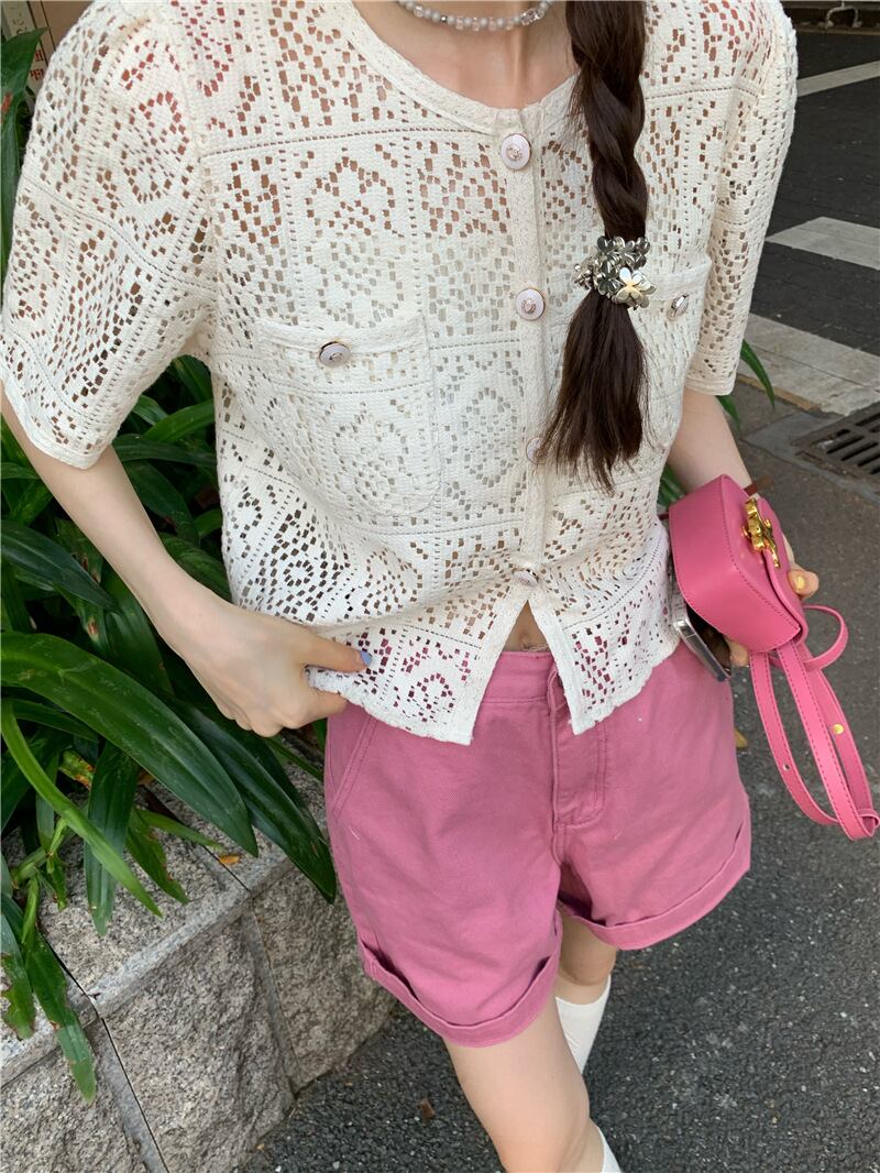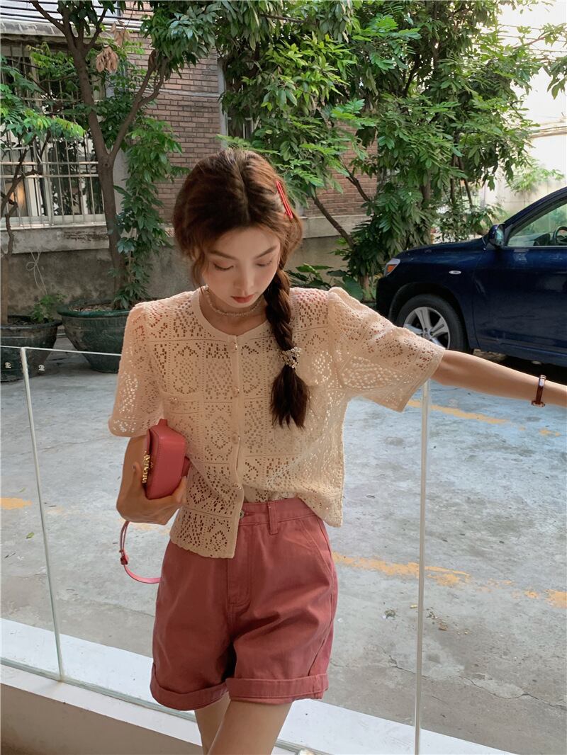 2023夏INS新作★ 韓国風 可愛い レース飾り透かし彫り 飾り ブラウス 優しい トップス シャツ