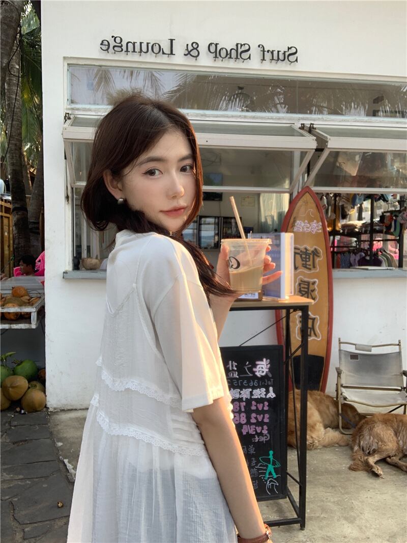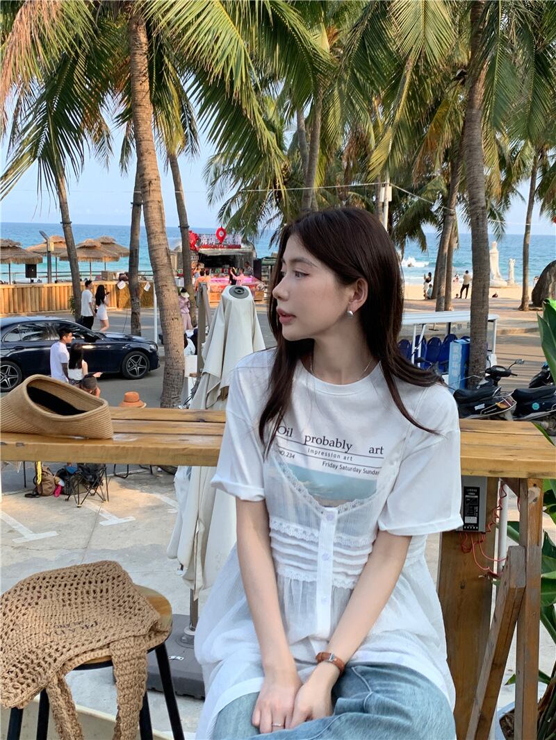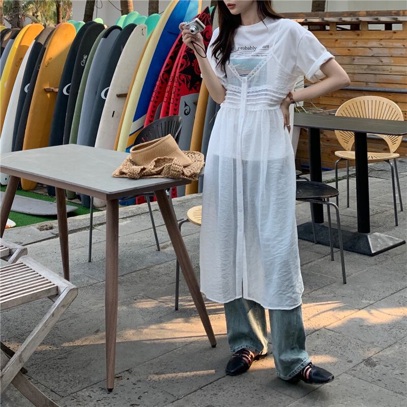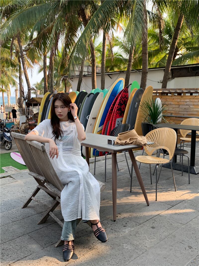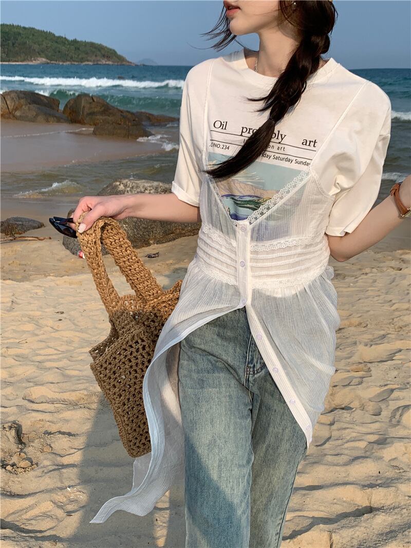 2023夏INS新作★Vネック レース飾り透かし彫り クロス飾り キャミソール チュールスカート