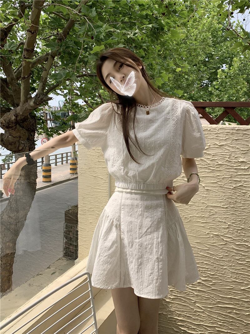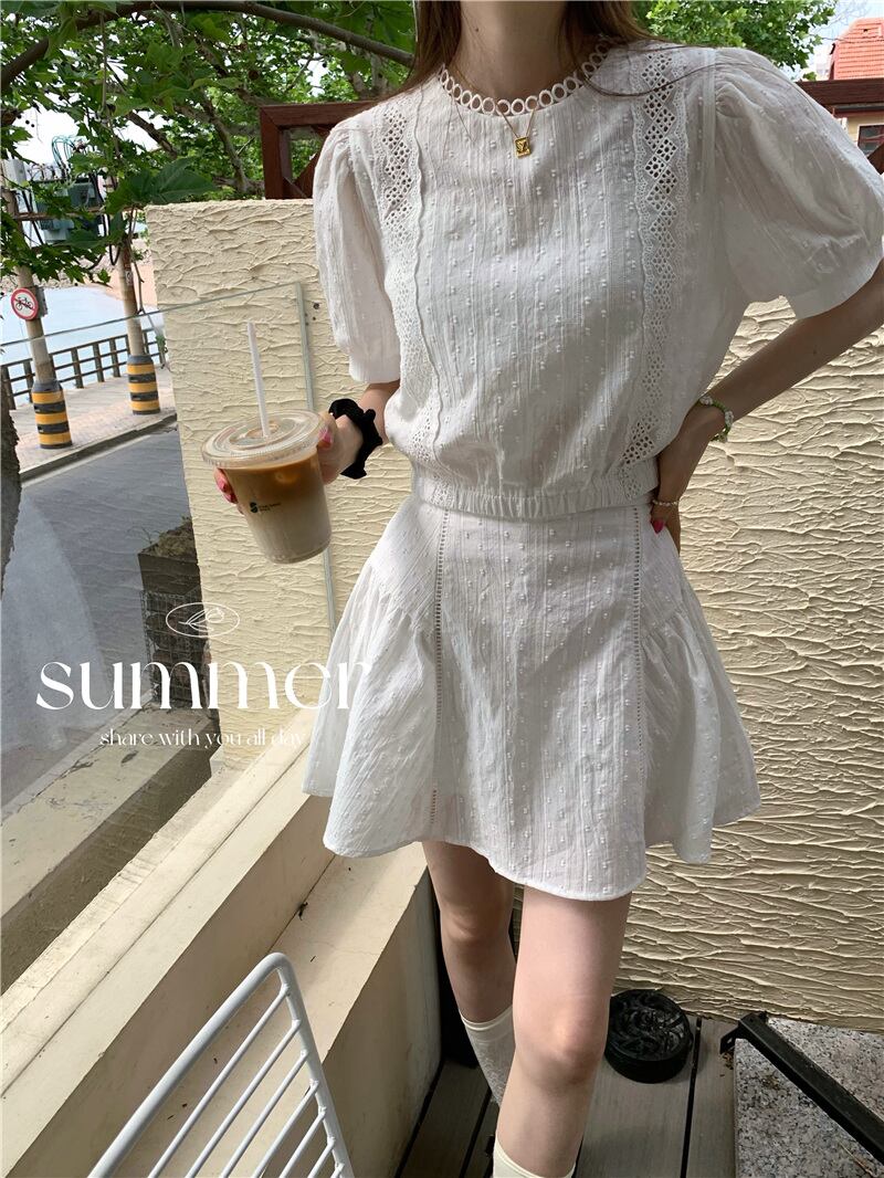 2023夏INS新作★気質 着痩せ シャツ+ショートスカート セット OLファッション韓国系