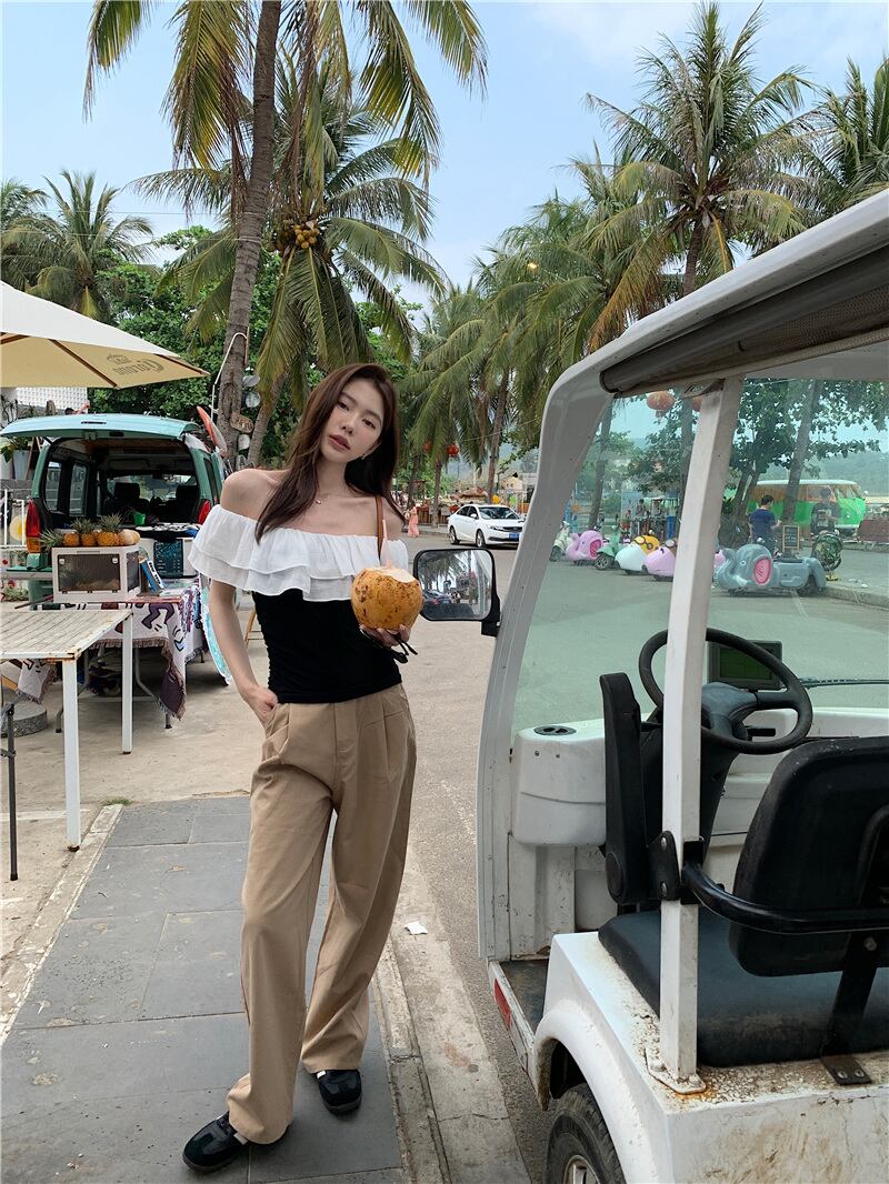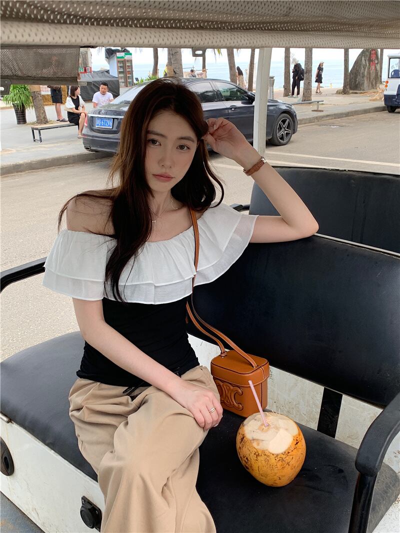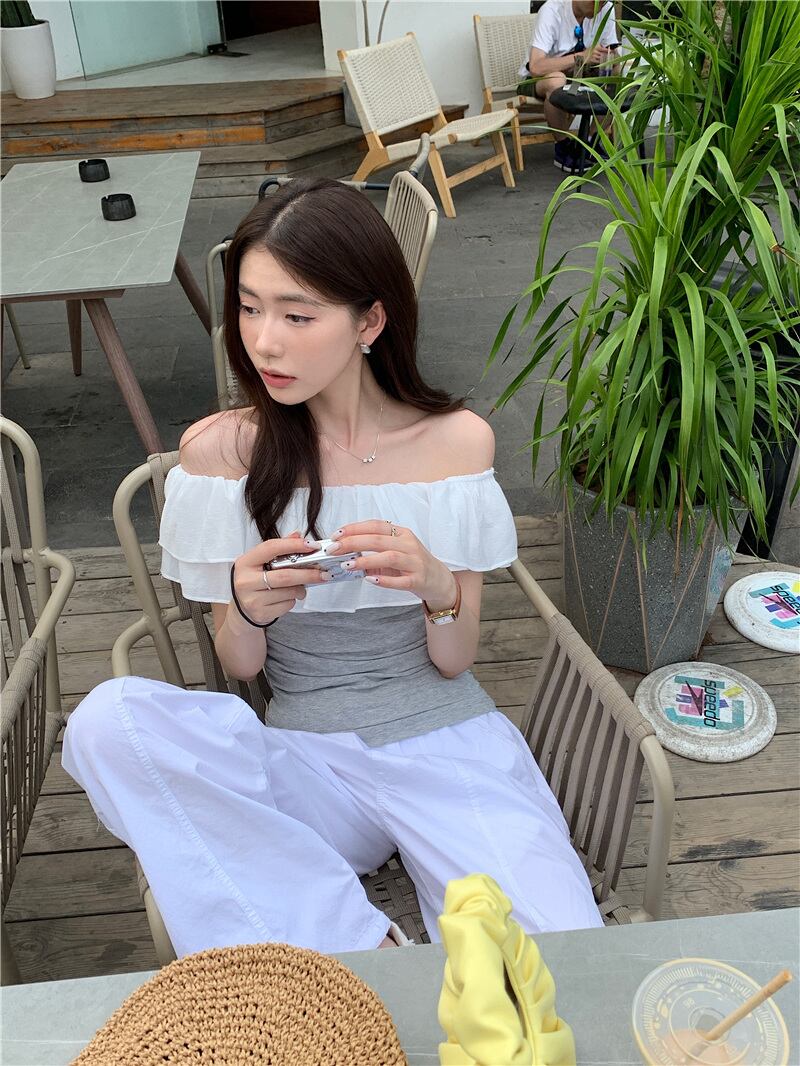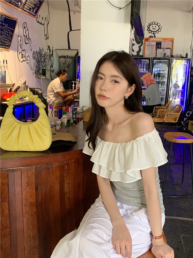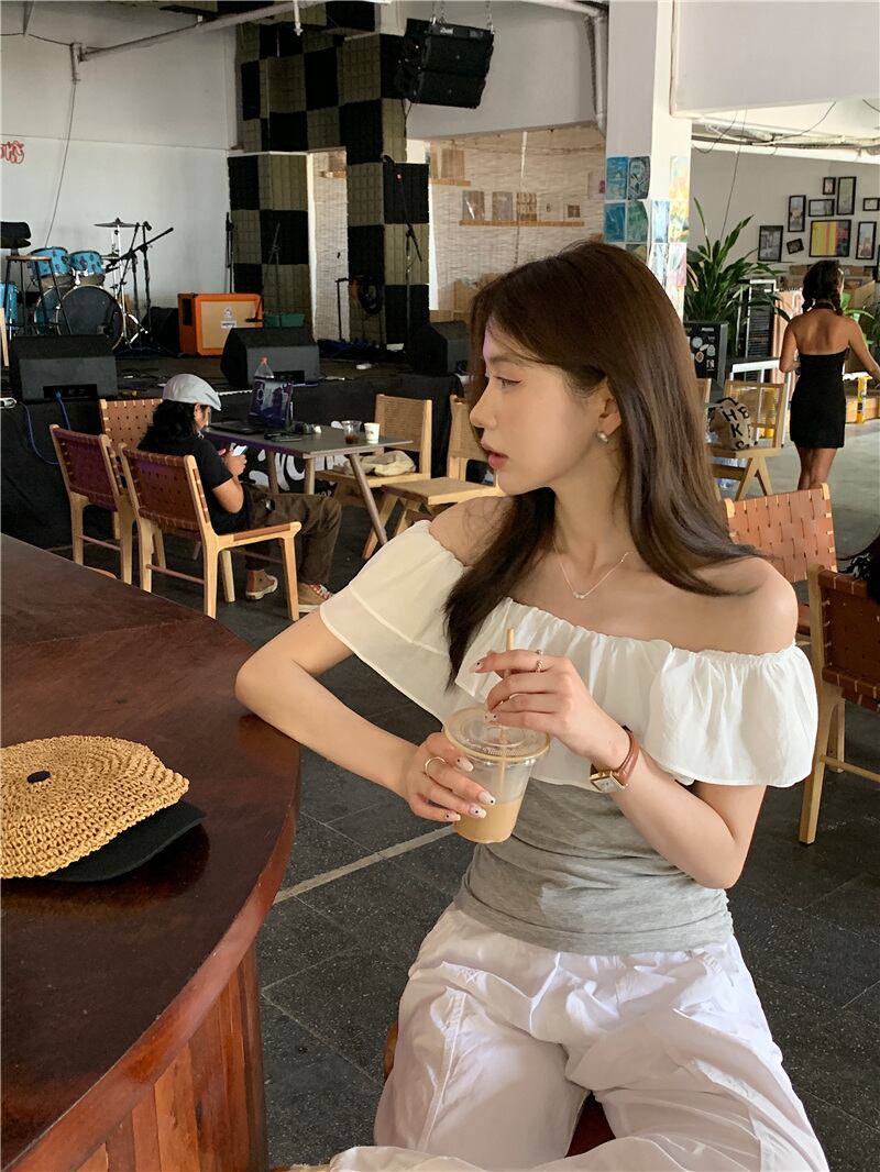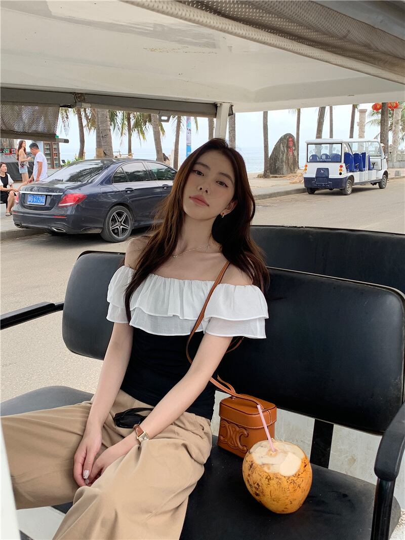 2023夏INS新作★気質トレンド系 ベアトップ トップス シャツ ブラウス 韓国ファッション