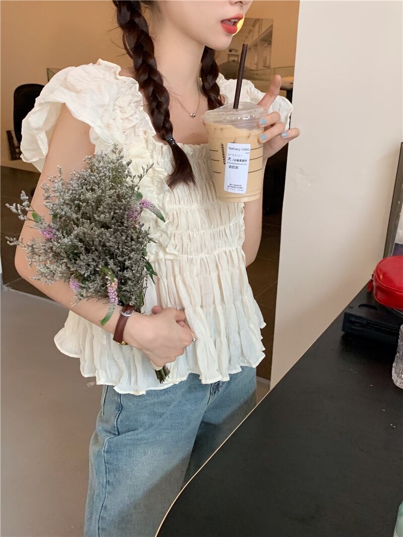 2023夏INS新作★·韓国風 可愛い パフスリーブ 優しい トップス シャツ ブラウス