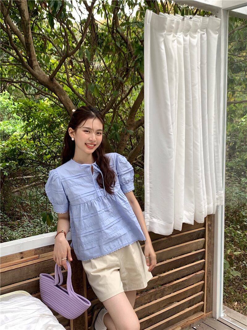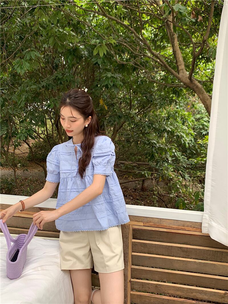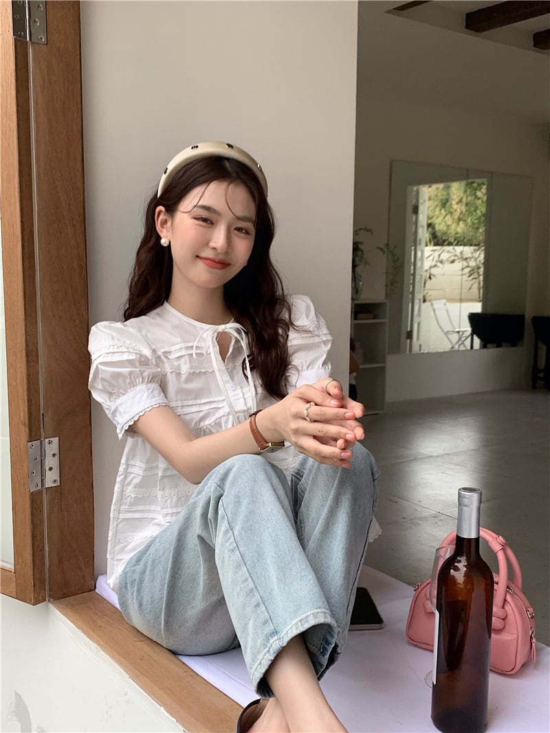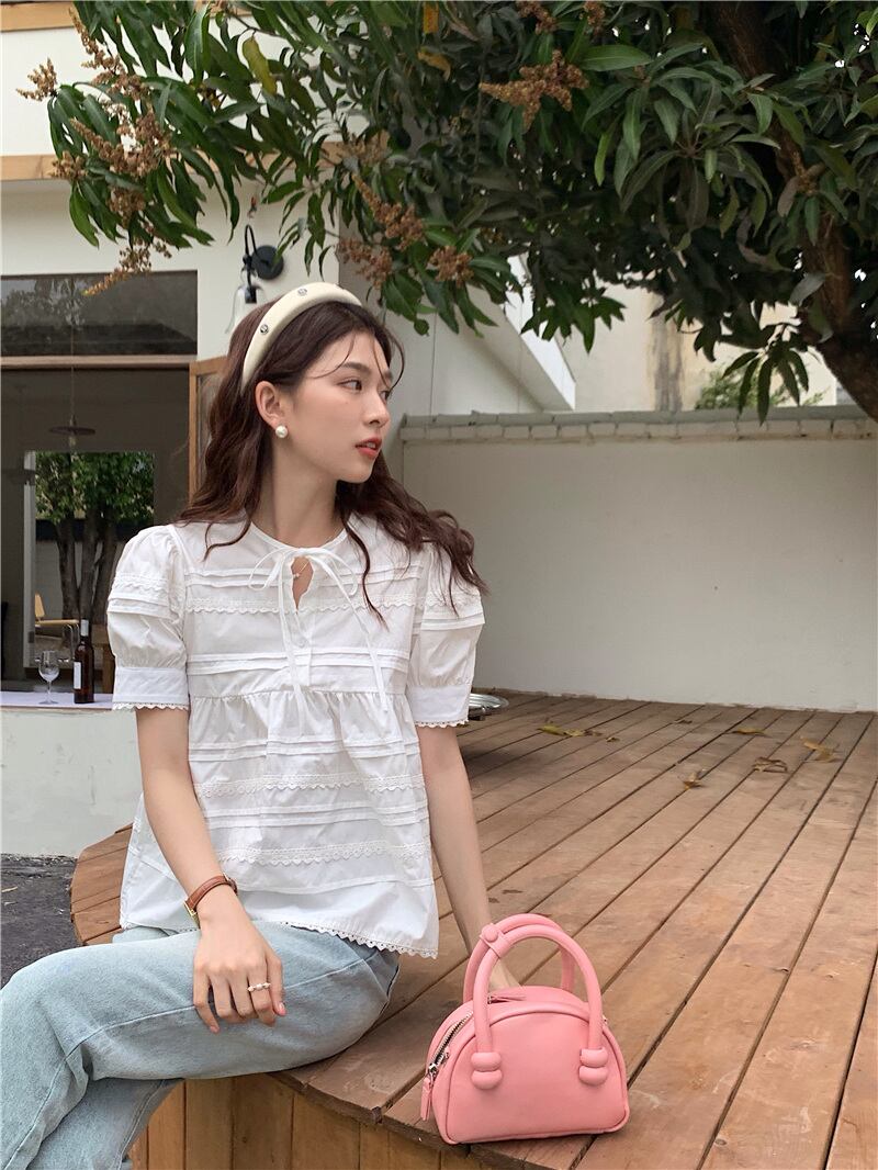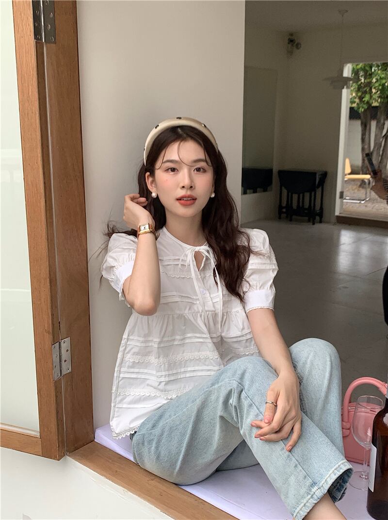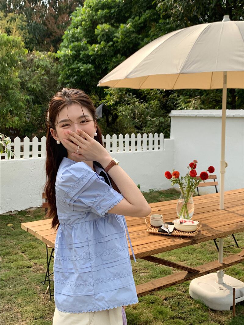 2023夏INS新作★可愛い パフスリーブ 韓国風 カジュアル系 シャツ ブラウス トップス 全2色