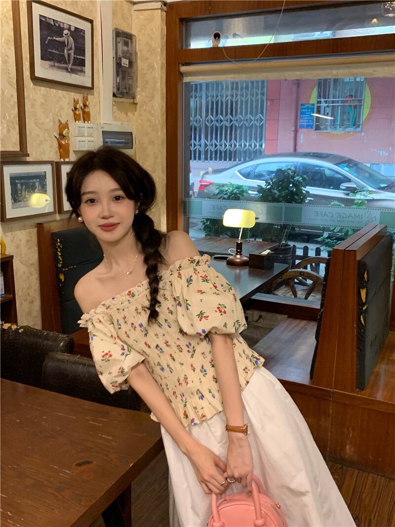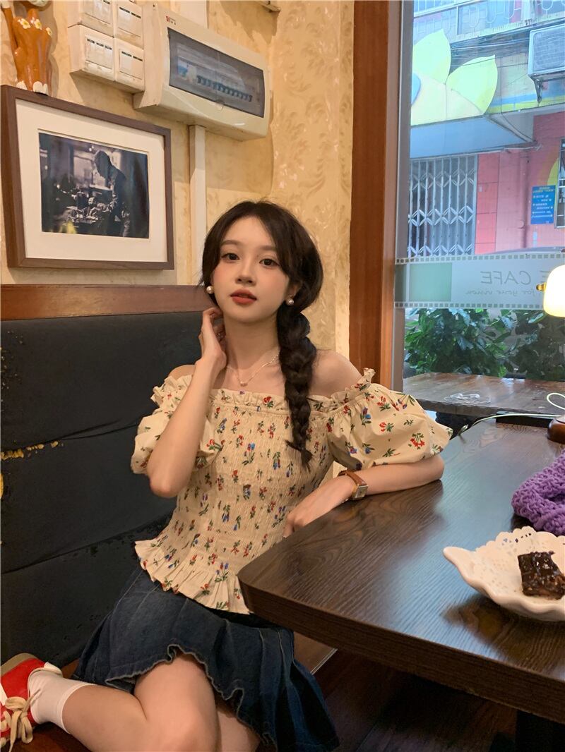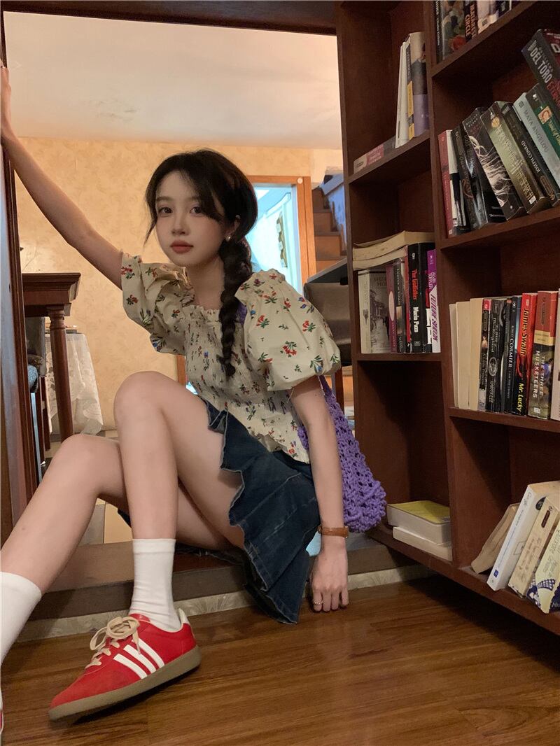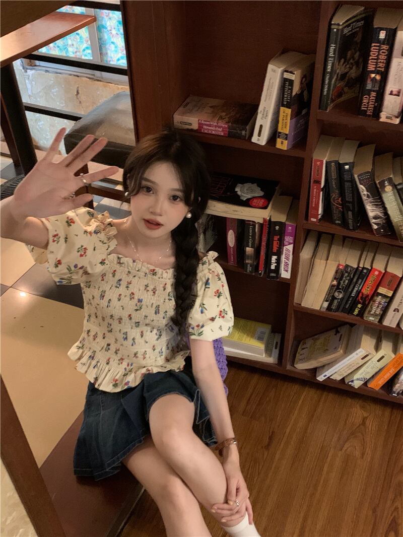 2023夏INS新作★可愛い 花柄プリント パフスリーブ 優しい トップス シャツ ブラウス