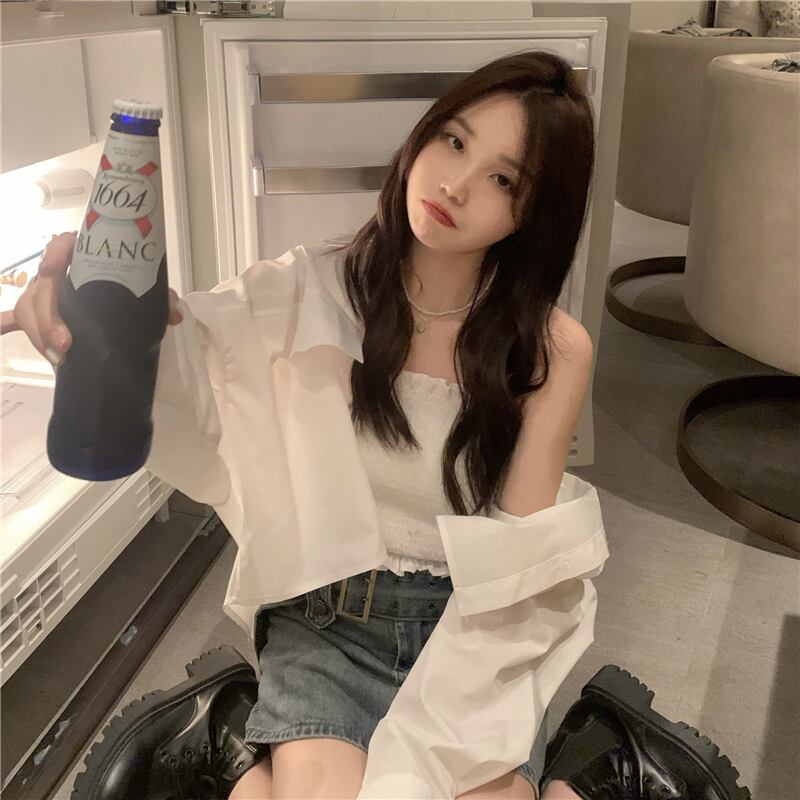 2023夏INS新作★気質 個性的 セクシー ベアトップ キャミソール + ブラウス セット