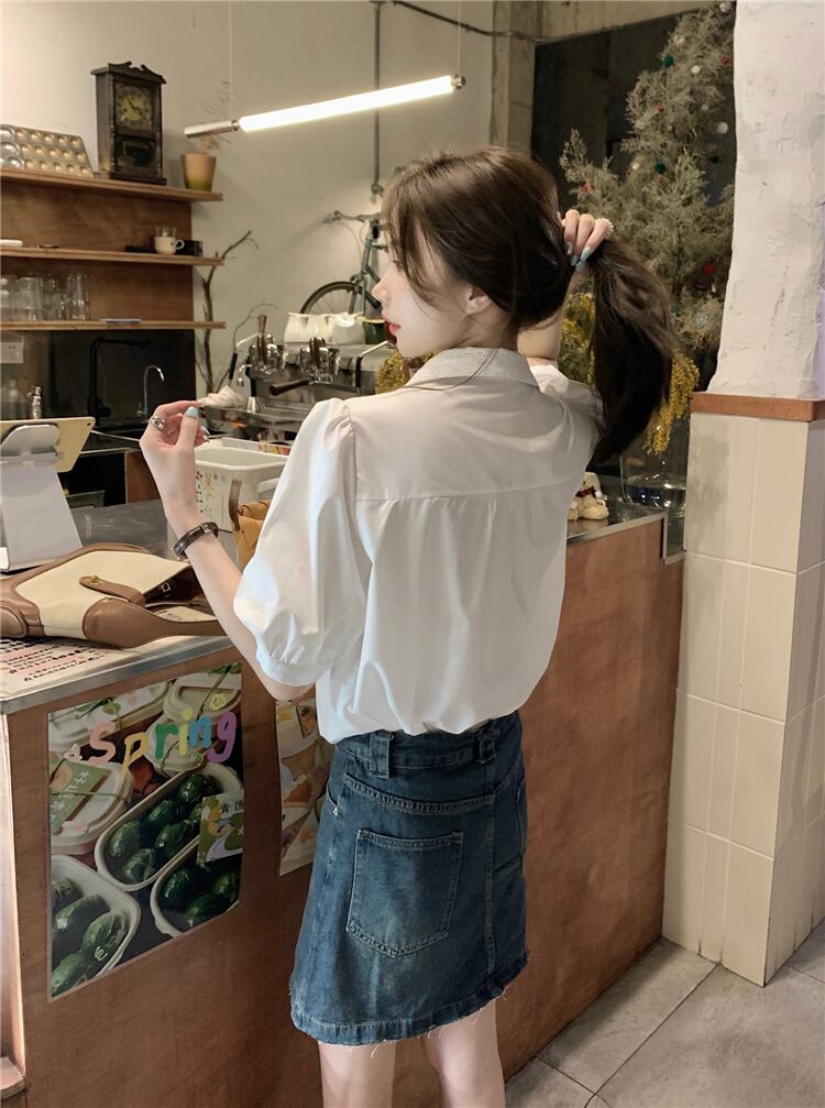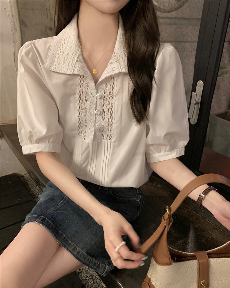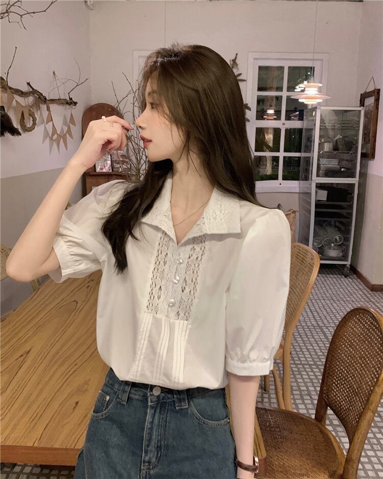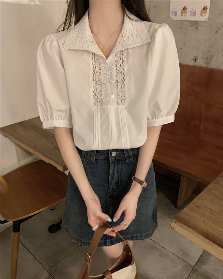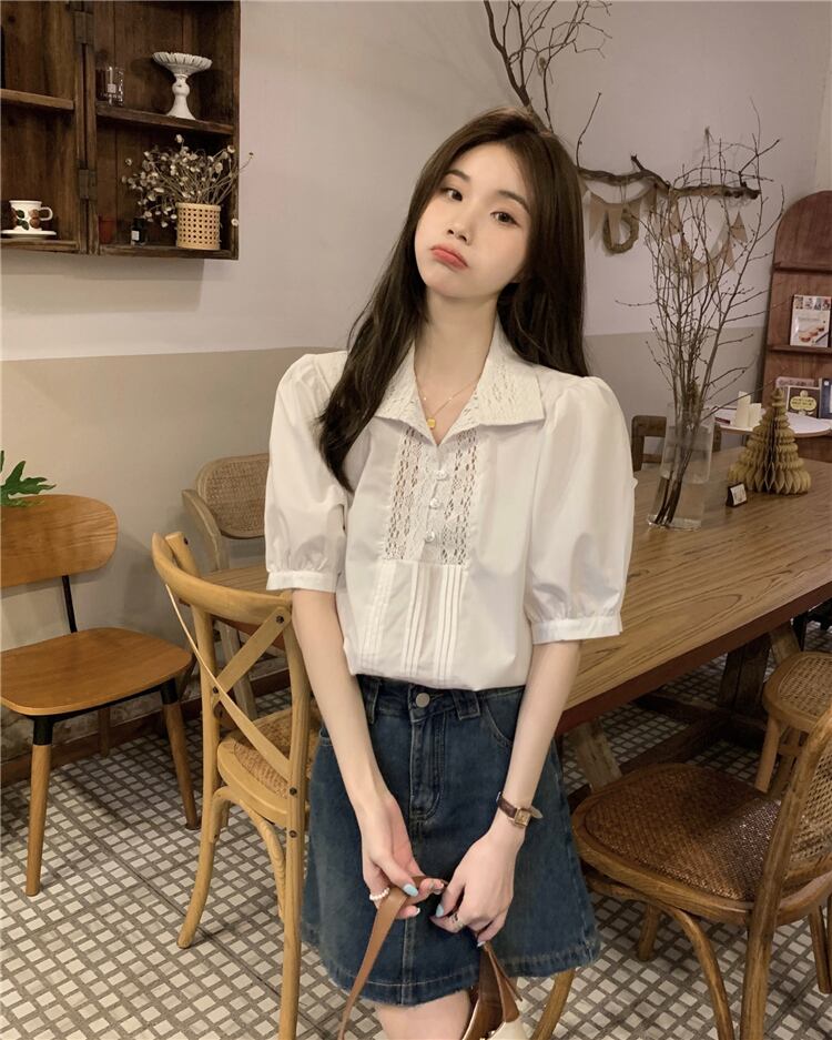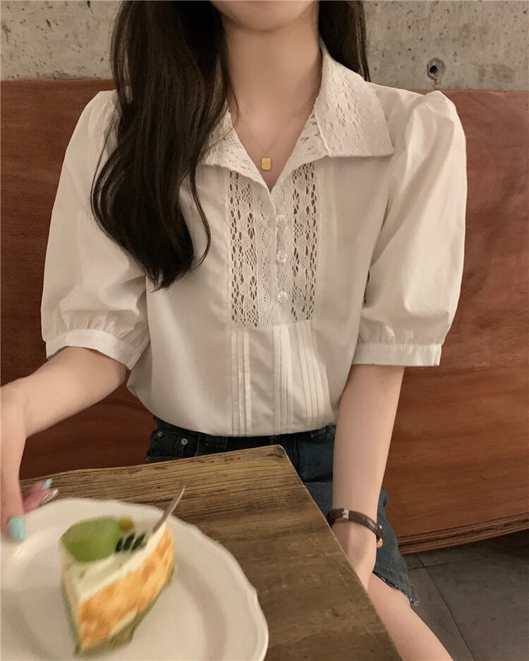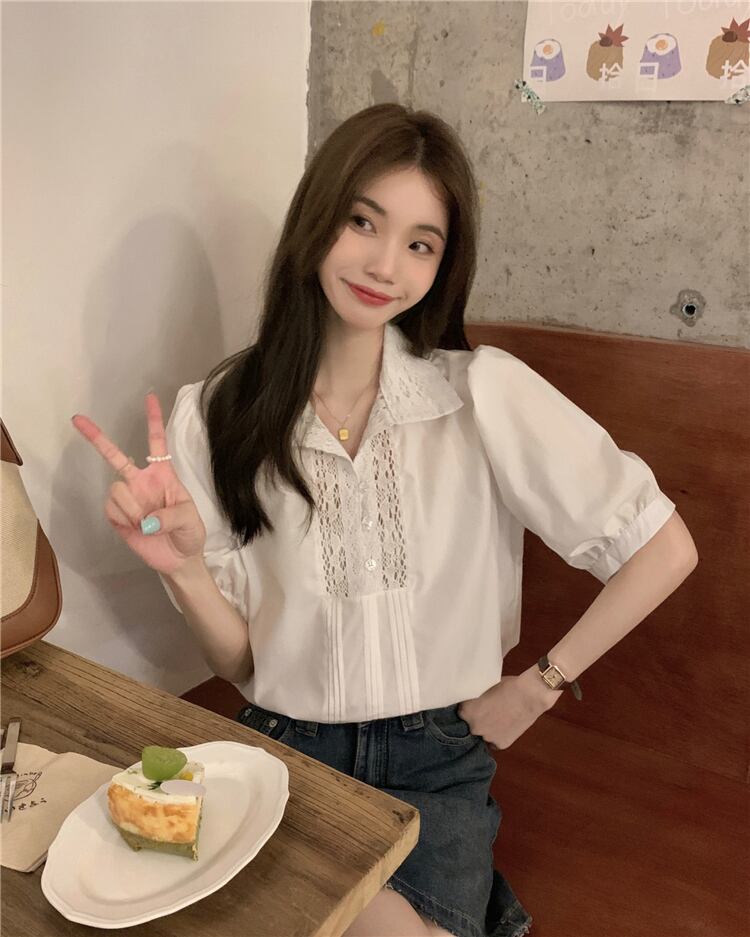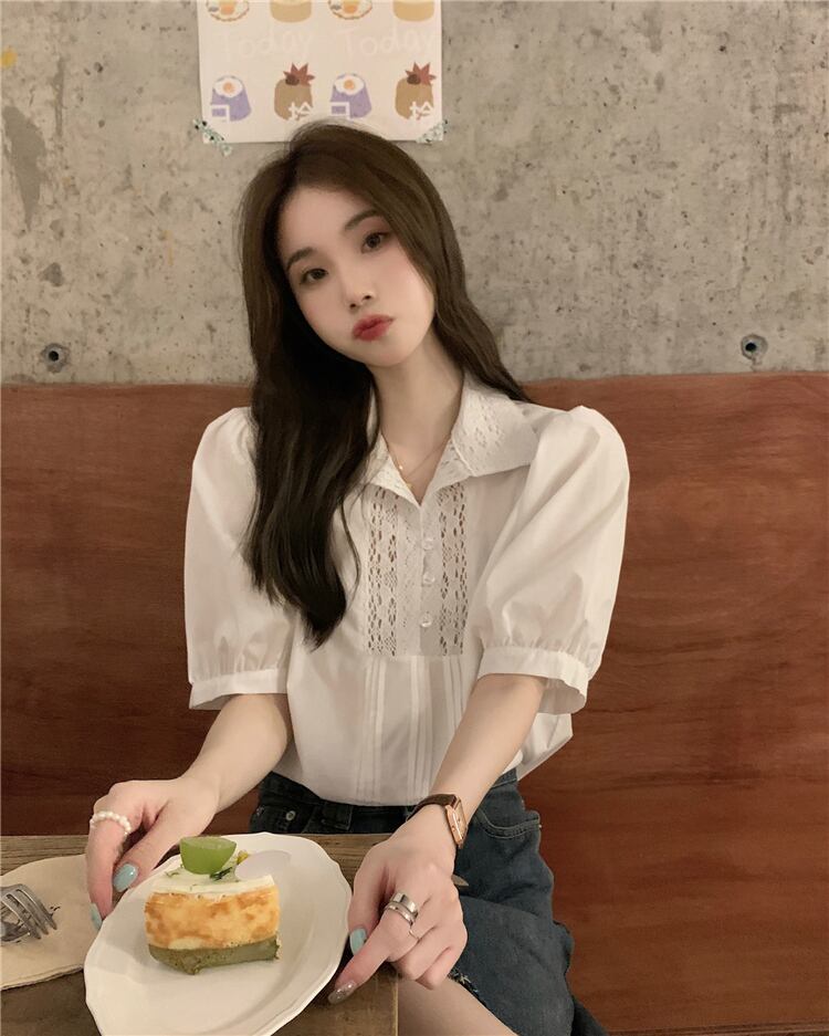 2023夏INS新作★気質 着痩せ 刺しゅう 透かし飾り ブラウス トップス 折り襟 シャツ