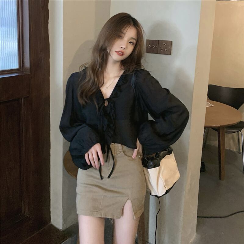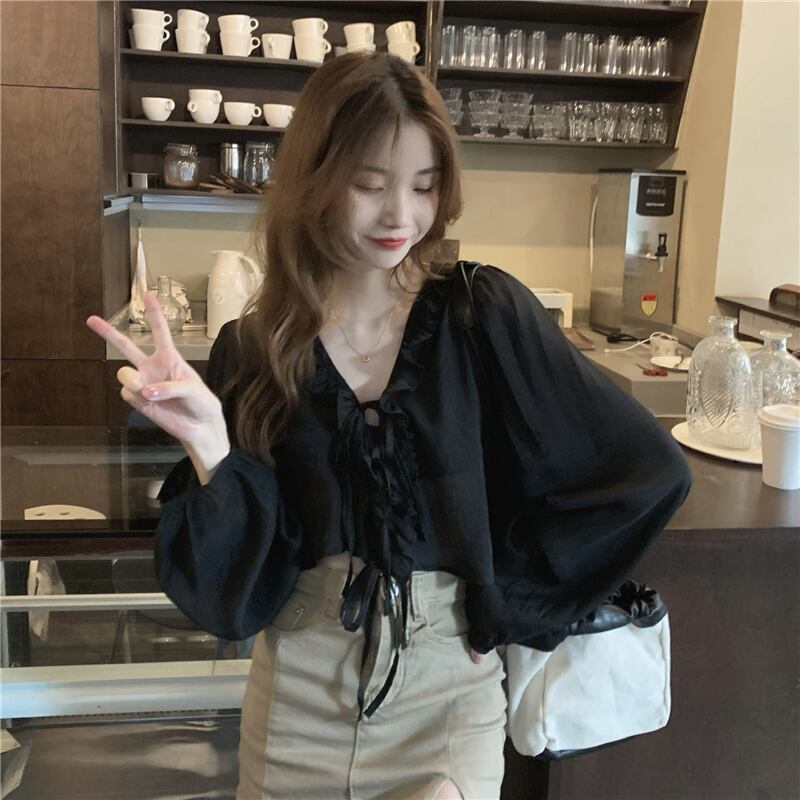 2023夏INS新作★全2色 ホワイト/ブラック Vネック トップス シャツ ブラウス