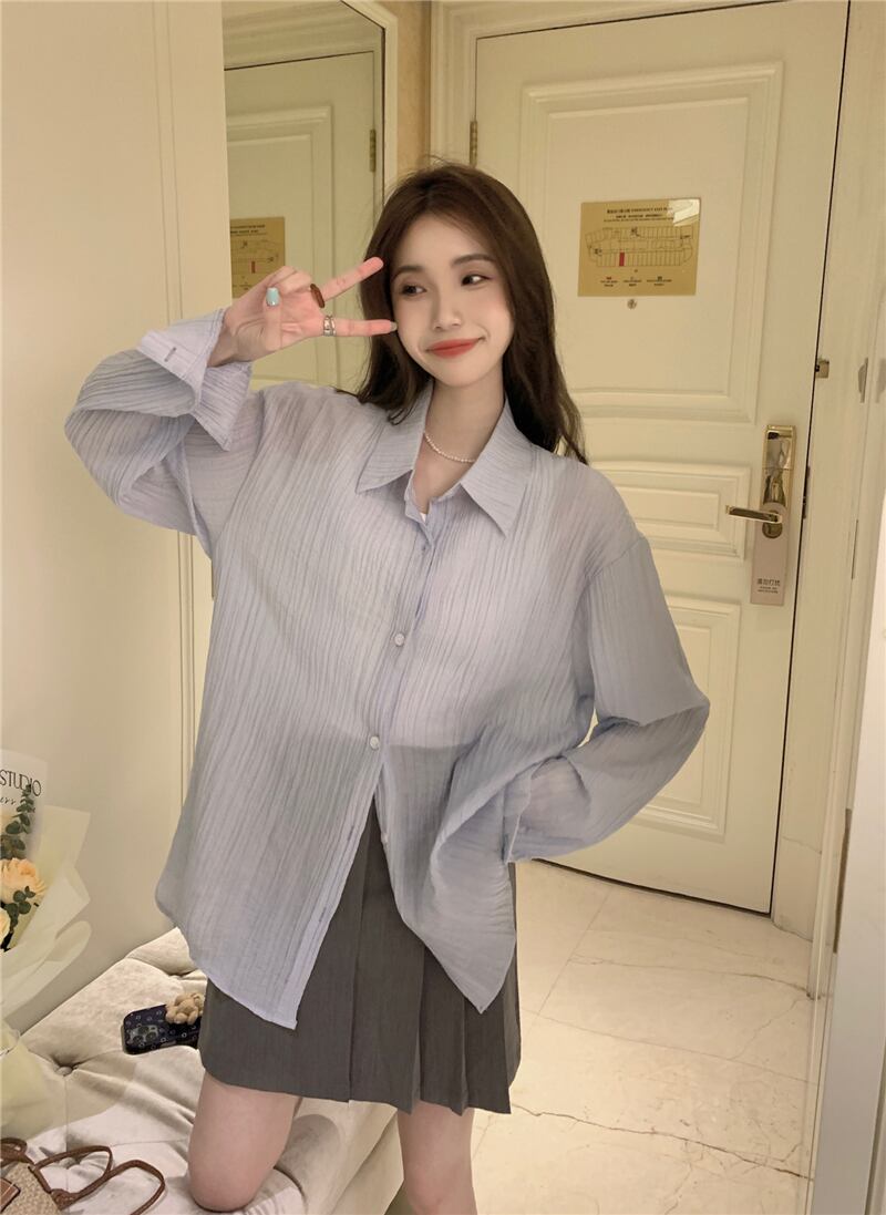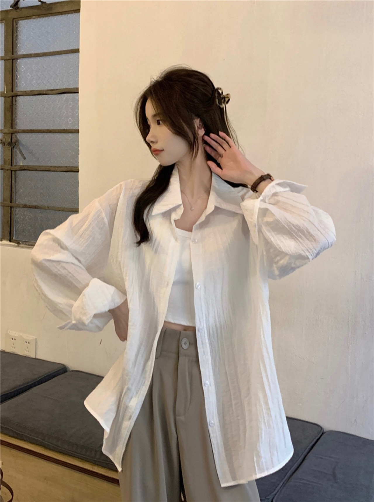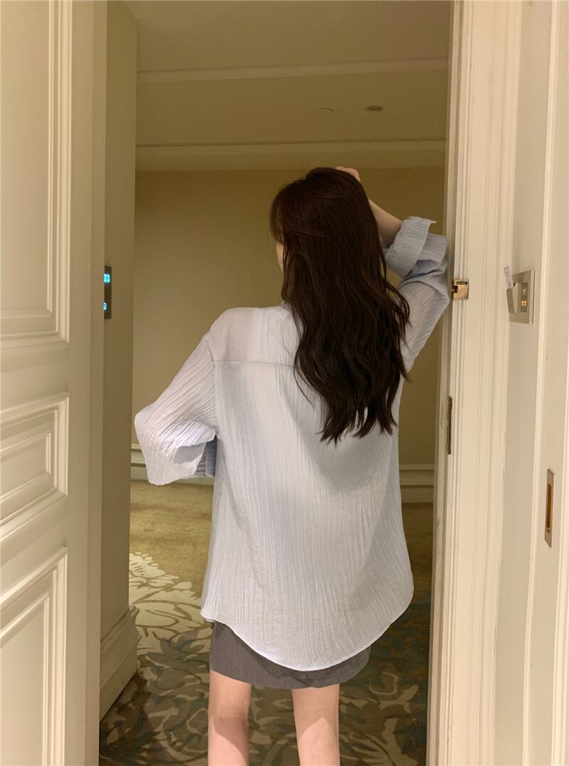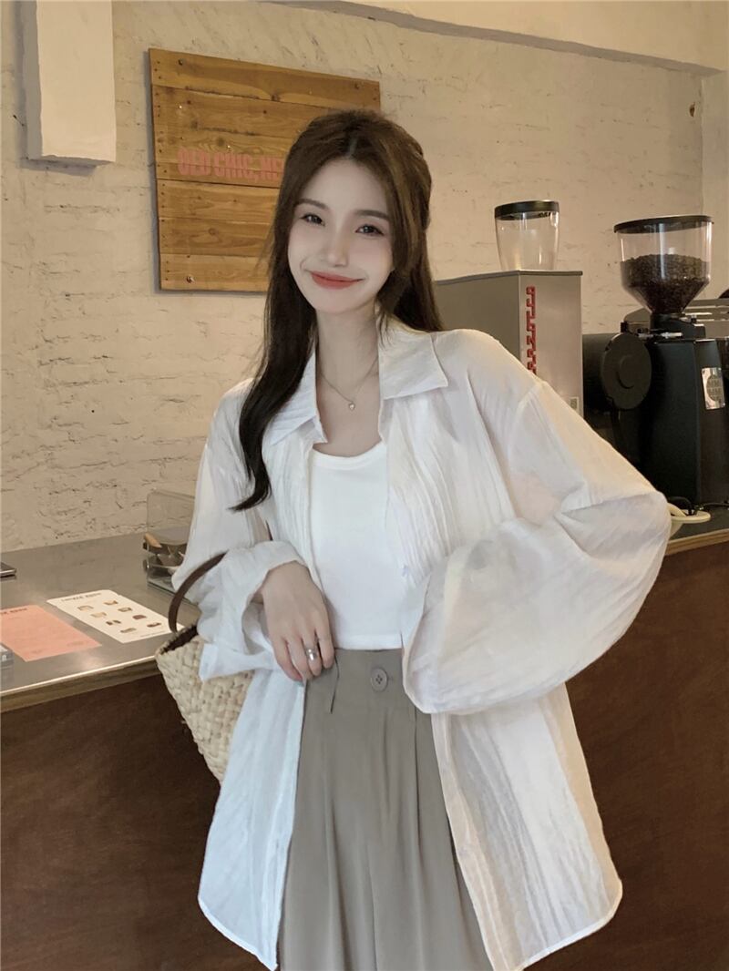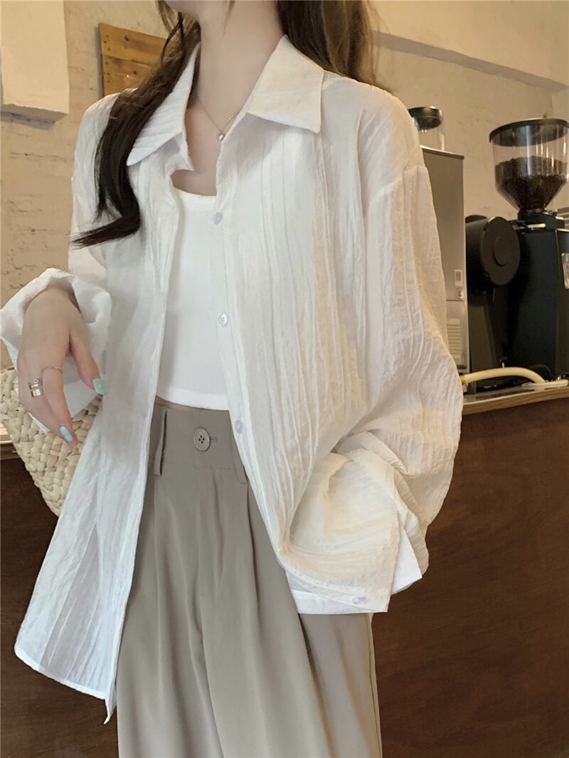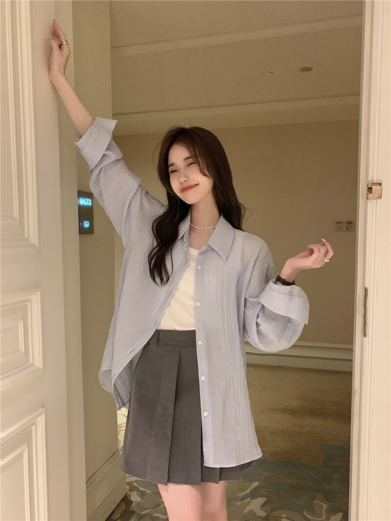 2023夏INS新作★シンプル 韓国風 カジュアル系 薄手 シャツ ブラウス トップス 全2色