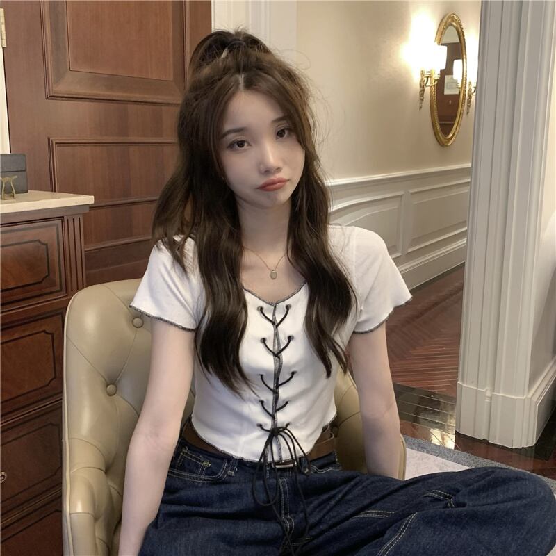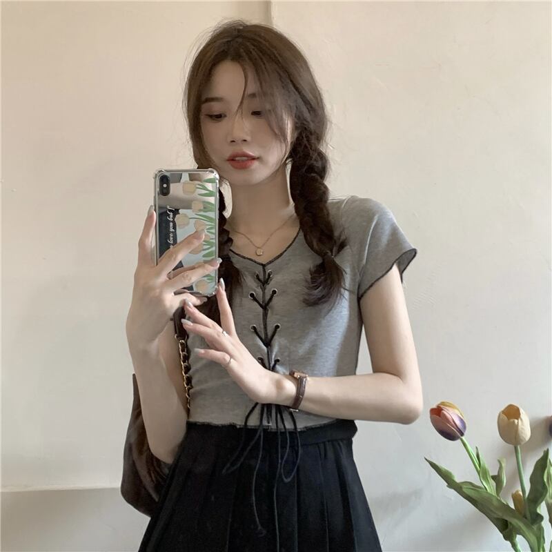 2023夏INS新作★韓国風 気質 着痩せ カジュアル Tシャツ スリム トップス ブラウス