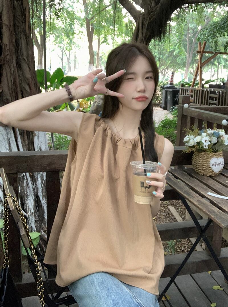 2023夏INS新作★韓国風 カジュアル系 袖なし トップス シャツ ブラウス 優しい