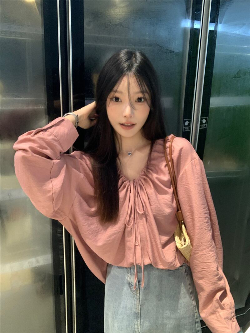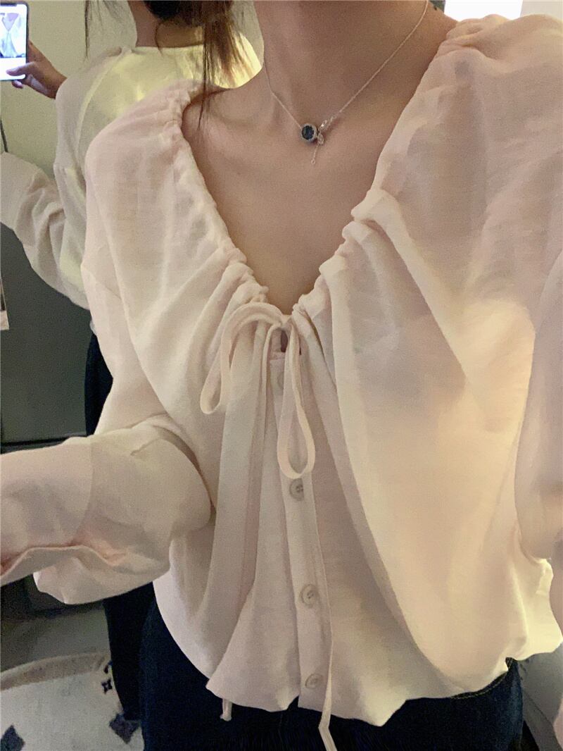 2023夏INS新作★トレンド系 Vネック 気質 着痩せ トップス シャツ ブラウス