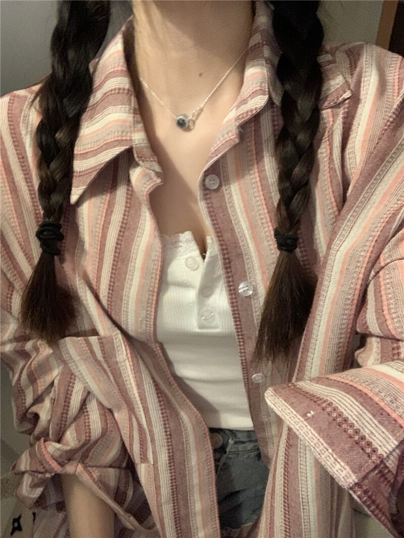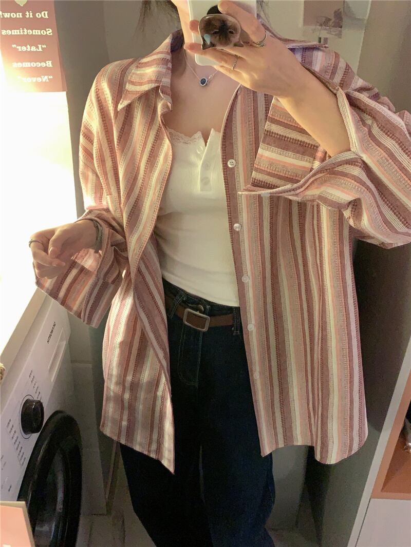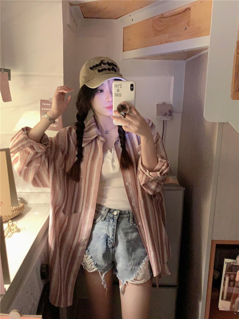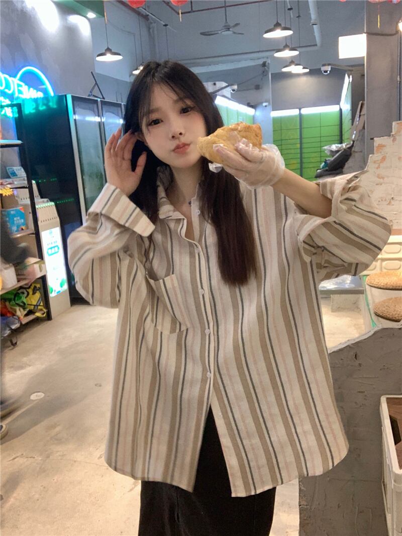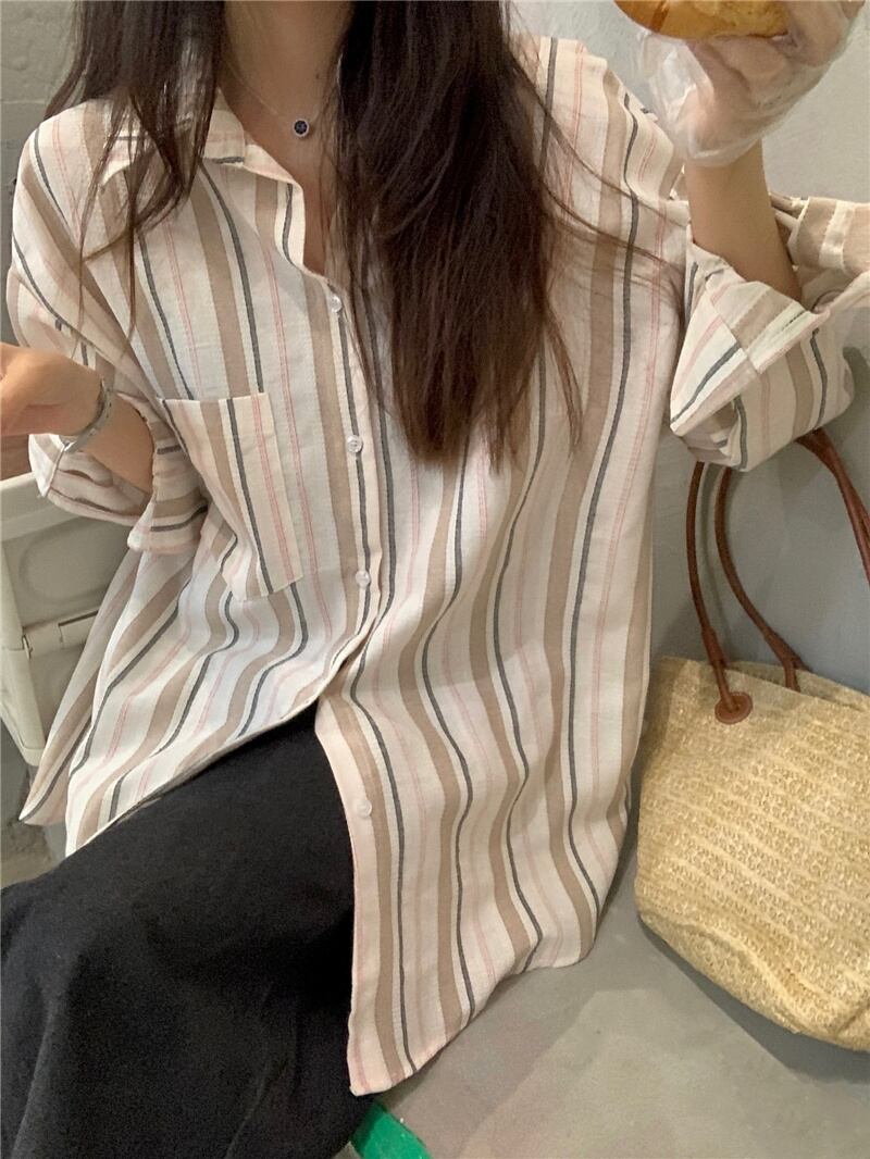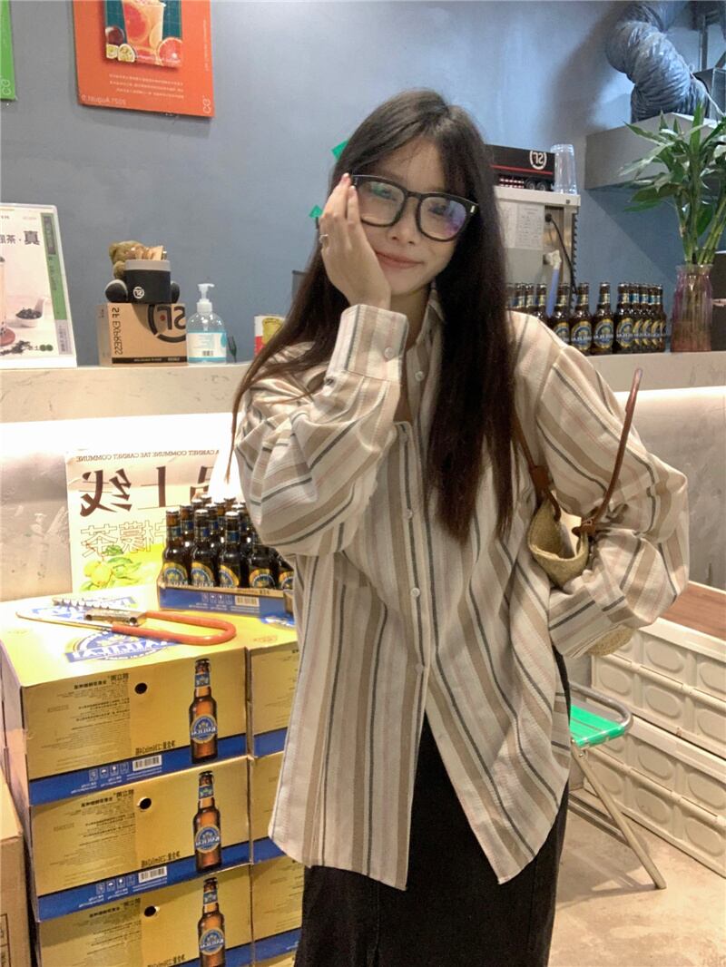 2023夏INS新作★韓国風 カジュアル系 ストライプ柄 シャツ ブラウス トップス 全2色