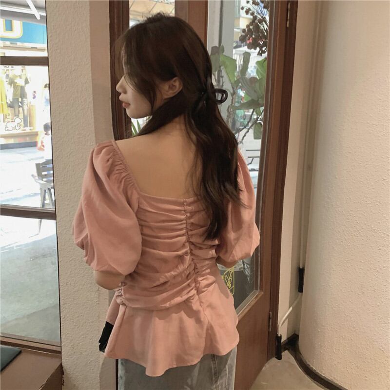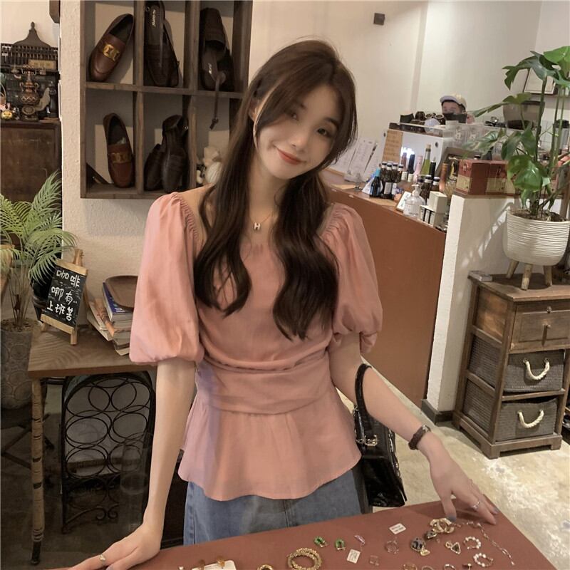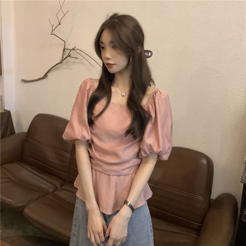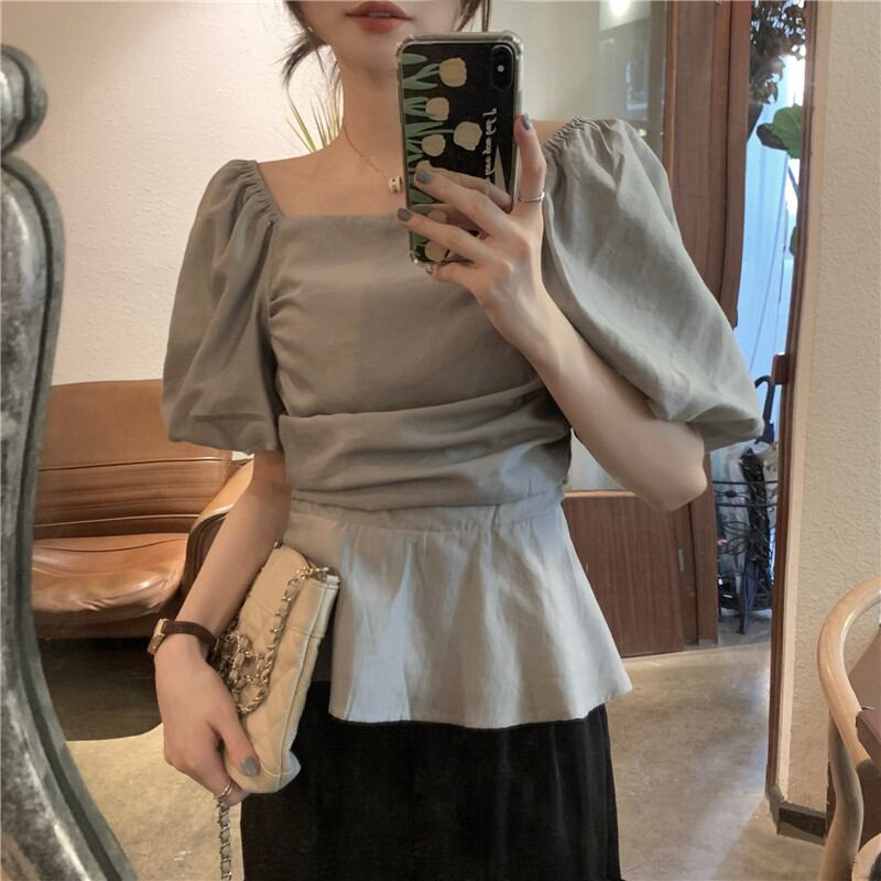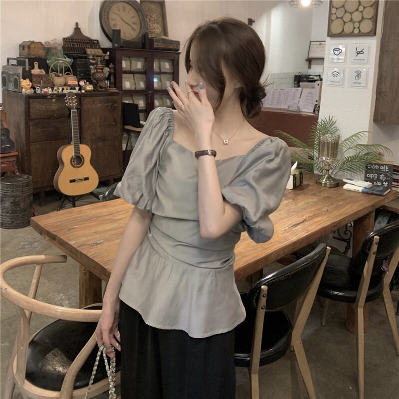 2023夏INS新作★ins超人気 全2色 シンプル半袖シャツ ボートネック 通勤 韓国系 トップス