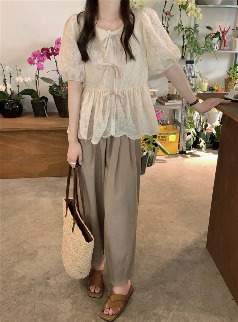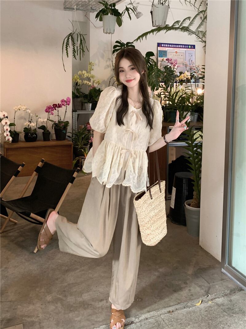 2023夏INS新作★ins超人気 超気質 優しい カットワーク Tシャツ+チノバンツ セットアップ