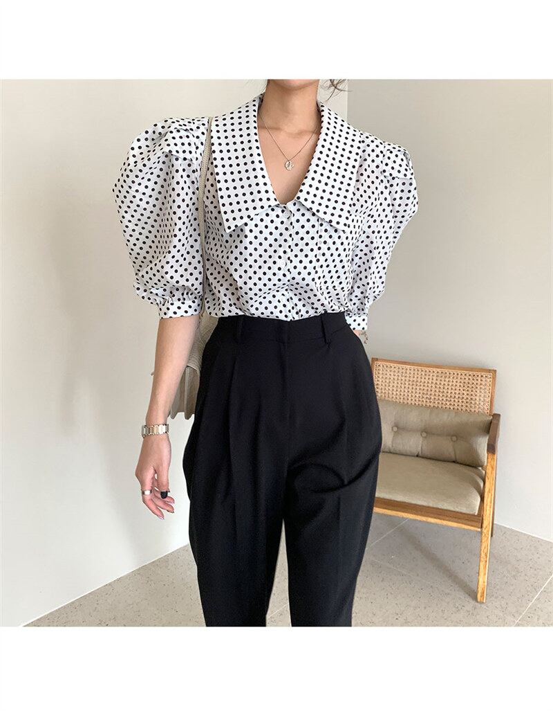 2023春INS新作★ins超人気 レトロ おしゃれ ドット シャツ/ブラウス