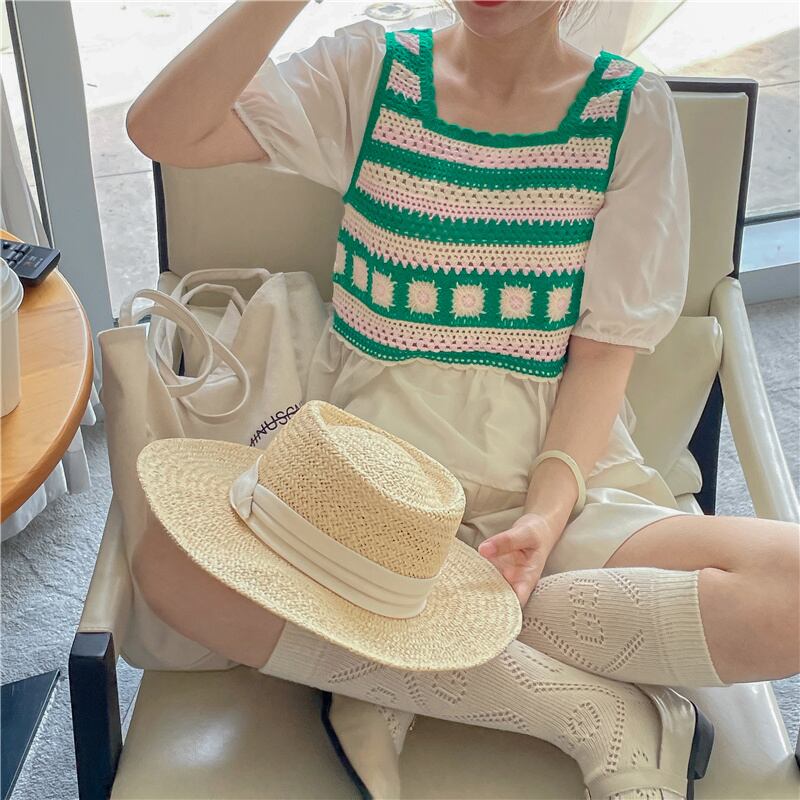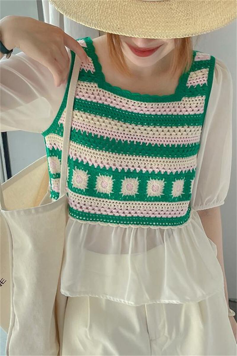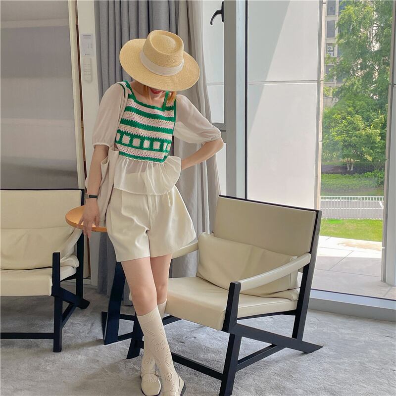 2023春INS新作★ins超人気 韓国系 偽2枚 ニット プルオーバー 短袖シャツ