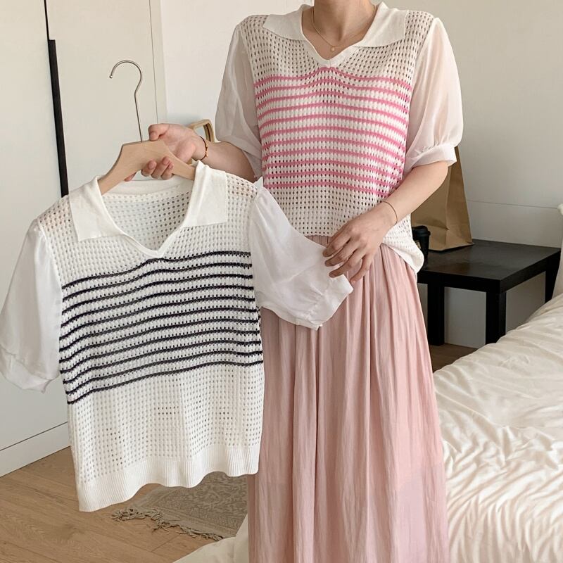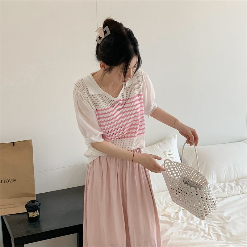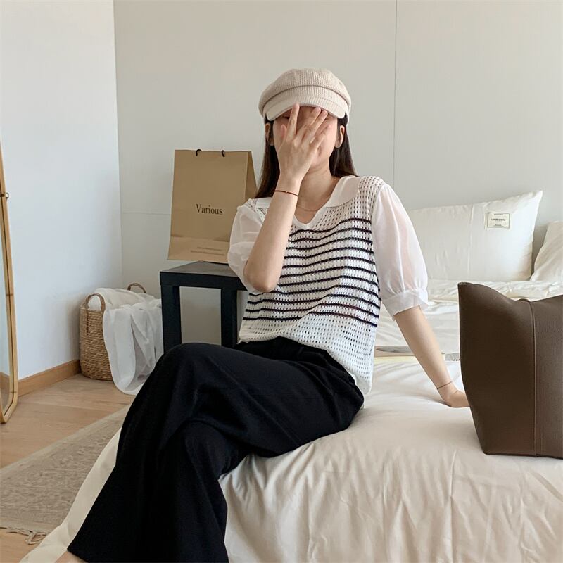 2023春INS新作★ins超人気 韓国系 デザイン性抜群 ニット プルオーバー 短袖シャツ