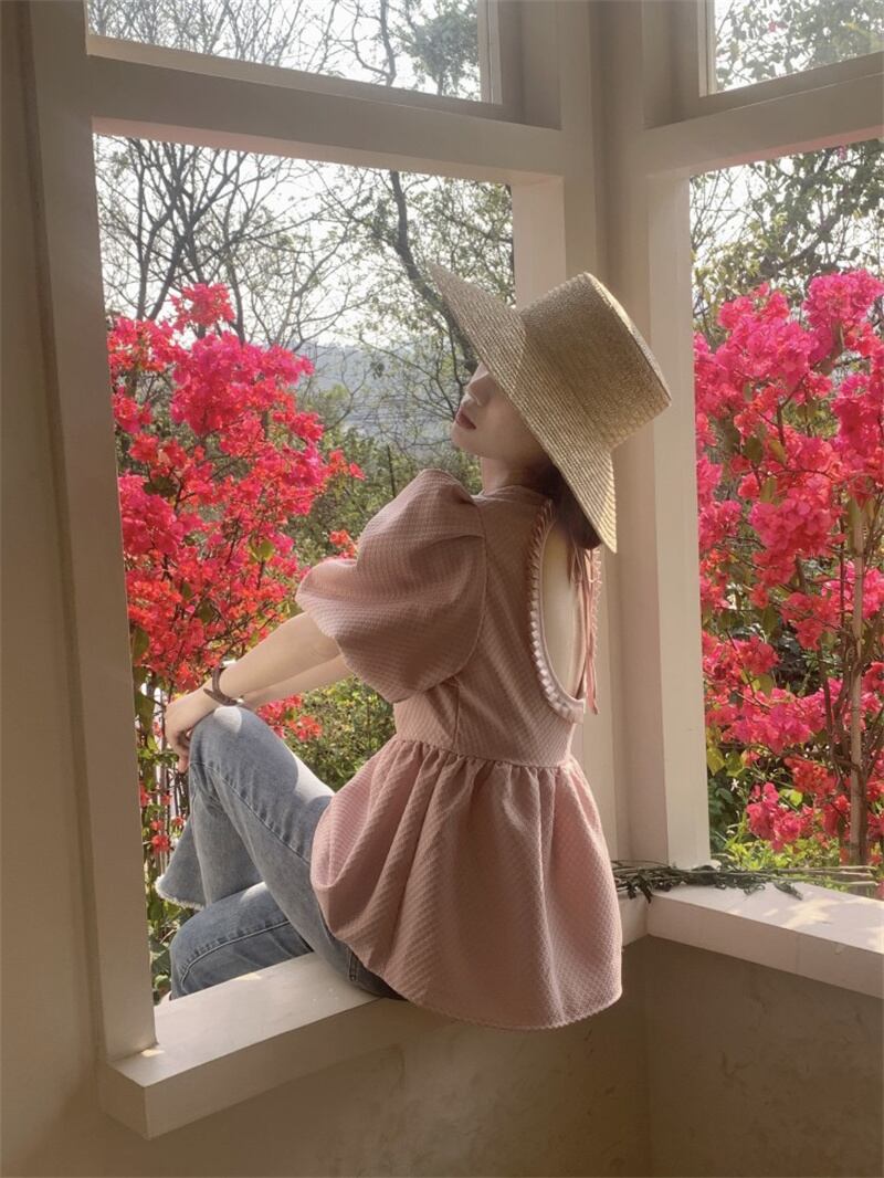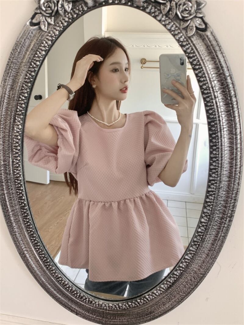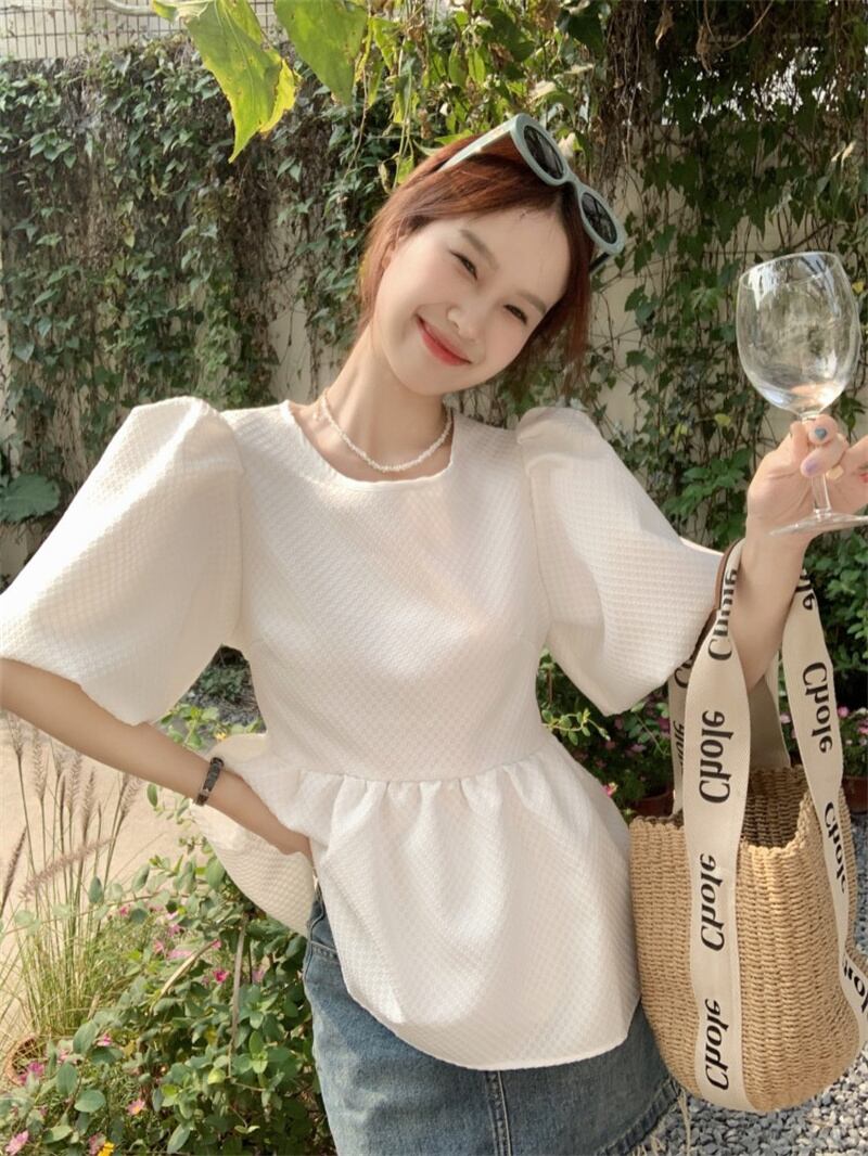 2023春INS新作★ins超人気 韓国系 デザイン性抜群 透かし彫り パフスリーブ シャツ/ブラウス