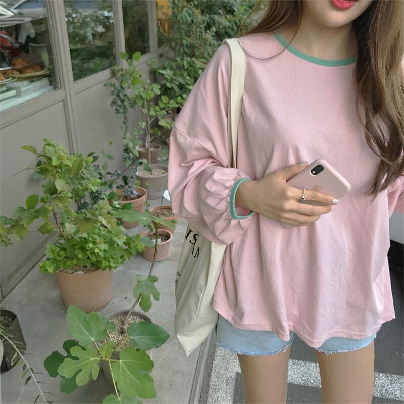 2023春INS新作★ins超人気 韓国系 デザイン性抜群 ラウンドネック 長袖Tシャツ