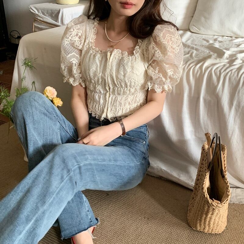 2023春INS新作★ins超人気 レース 透かし彫り デザイン感 エレガント シャツ