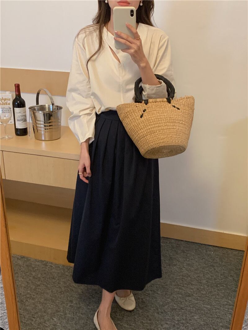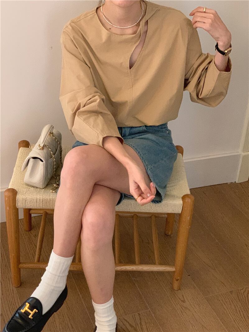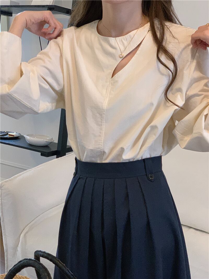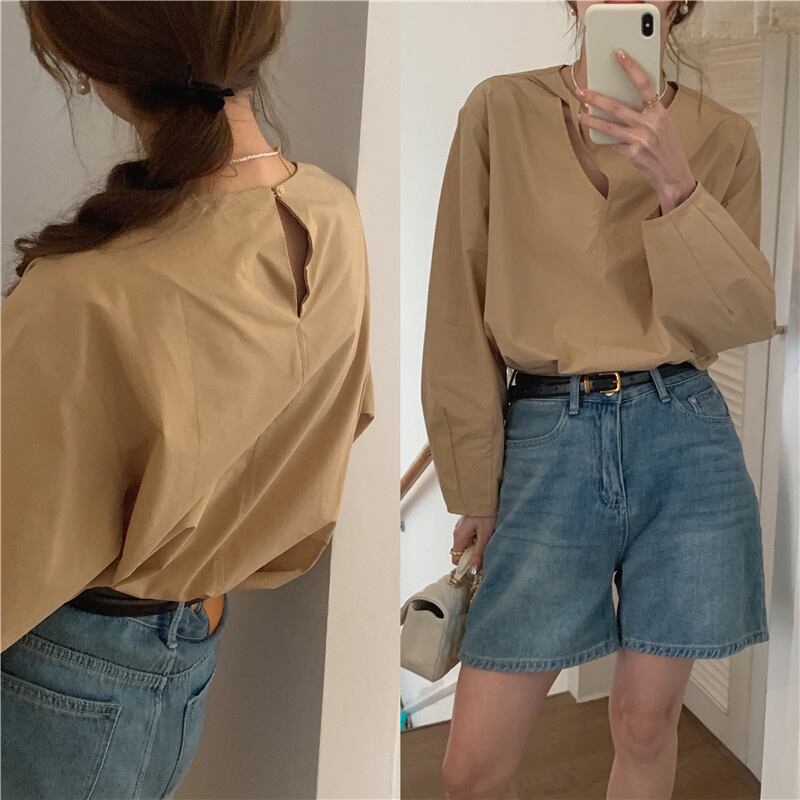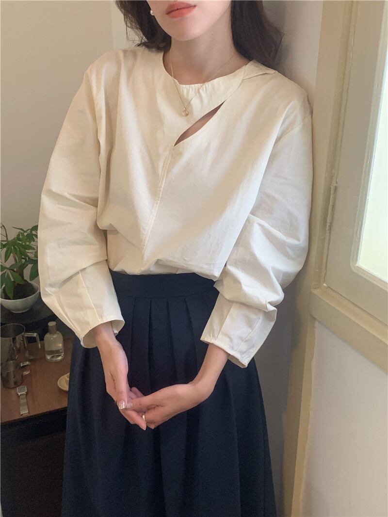 2023春INS新作★ins超人気 レトロ おしゃれ 透かし彫り 無地 シャツ/ブラウス